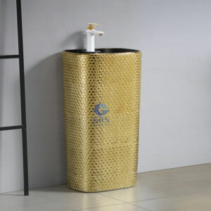 Golden Diamond Pattern Ceramic Sanitary Wares Combo Floor Mounted One Piece Basin Pedeatral Sinks Bathroom Washbasin for Home Hotel