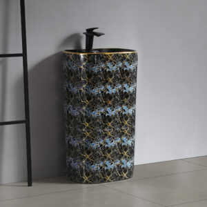 Luxury Ceramic Sanitary Wares Combo Floor Mounted One Piece Grey with Gold Pattern Basin Pedeatral Sinks Bathroom Washbasin