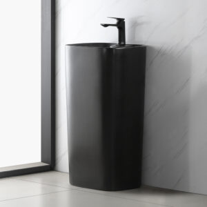 Hotel Grade Matt Black Ceramic Sanitary Wares Combo Floor Mounted One Piece Basin Pedeatral Sinks Bathroom Washbasin
