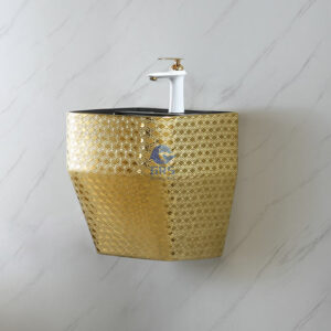 Golden Pattern Design Sanitary Inodoros Unit Electroplating Gold Integrated Floor Standing Washbasin Bathroom Single Sinks