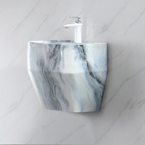 Modern Design Natural Pattern Ceramic Sanitary Wares Combo Floor Mounted One Piece Basin Pedeatral Sinks Bathroom Washbasin