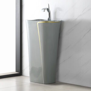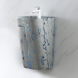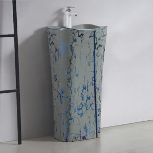 Grey Glazed Ceramic Blue Eletroplated Sanitary Wares Set One Piece Standing Washbasin Household Hotel Bathroom Pedestral Basin Sinks