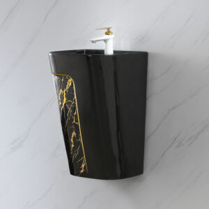 Black Golden Sanitary Wares Set Marble Feature Decoration Integrated Wall HUng Washbasin Household Hotel Bathroom Basin Sinks