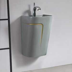 Grey Glazed Ceramic Sanitary Wares Golden Line Decoration Wall Hanging Washbasin Household Hotel Bathroom Basin Sinks