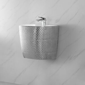 Hot Item Shinning Silver Glossy Glazed Ceramic Basin Wall Hung Sinks Bowl for Bathroom Toilets Lavatories for Hotels Villas Apartments