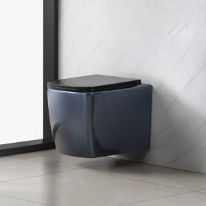 Dark Blue Polished Ceramic with Black Cover Rounded Arc Commode Wc Wall Hung Toilet Bowl Bathroom Toilets Lavatories Combo
