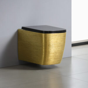 Popular Golden Wire Drawing Design Ceramic with Black Cover Rounded Arc Commode Wc Wall Hung Toilet Bowl Bathroom Toilets Lavatories Combo