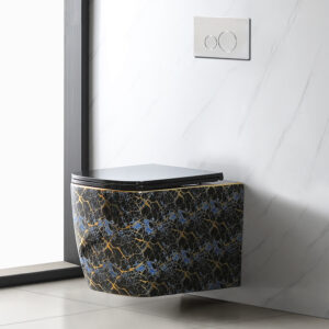 Modern Design Black Glazed Ceramic with Blue and Gold Decor Rounded Arc Commode Wc Wall Hung Toilet Bowl Bathroom Toilets Lavatories Combo