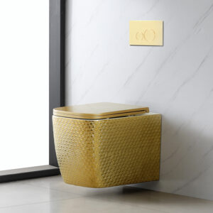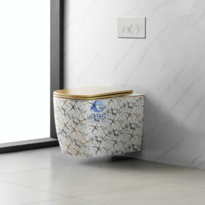 Marble Design White and Gold Colored Commode Wc Wall Hung Toilet Bowl Polished Ceramic Easy to Clean Bathroom Toilets Lavatories Combo