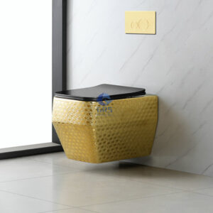 Luxury Sanitary Wares Lavatory Unit Black Gold Electroplated Floating Vessel Toilet Bowl Wall Hung Household Bathroom Toilet WC Commode