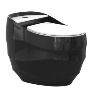 Black and White Wavy Surface Round Shaped Toilets Integrated Floor Mounted Siphonic Flushing Concealed Tank Bowl WC Toilet