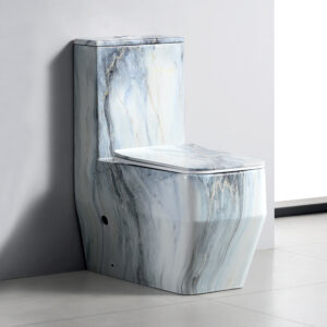 Artificial Stone Pattern Sanitary Inodoros Unit Blue Color Water transfer Integrated Floor Standing Commode WC Bathroom Toilet