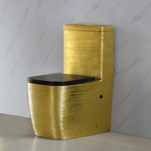 Artistic Gold-plating Ceramic Sanitary Wares Set Standing One Piece Golden Toilet Commode with Black Cover Bathroom Toilets Bowl Wc