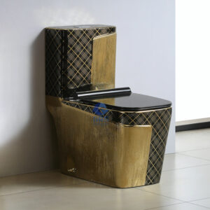Sanitarios Inodoros Wc Golden Line with Black Seat Cover Bathroom Ceramic One-Piece Black Gold White Colored Toilets Bowl