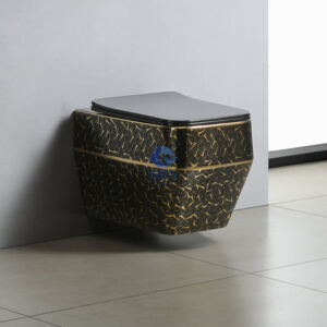 Sanitary Lavatory Furniture Set Black Gold Electroplated Floating Vessel Toilet Bowl Wall Hung Household Bathroom Toilet WC Commode