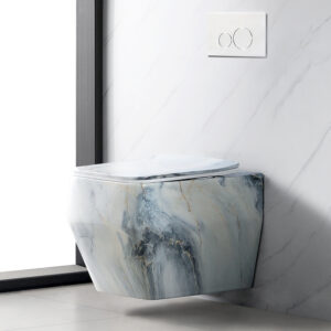 Sanitary Lavatory Furniture Set Imitated Natural Marble Water transfering Floating Vessel Toilet Bowl Wall Mounted Bathroom Toilet WC Commode