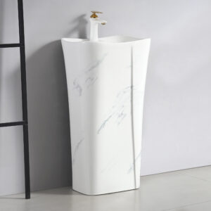 White Marble Style Ceramic Sanitary Wares Set One Piece Standing Washbasin Household Hotel Bathroom Pedestral Basin Sinks