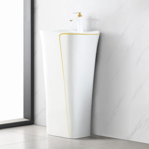 White Glazed Ceramic Sanitary Wares Set Golden Decoration Wall Hanging Washbasin Household Hotel Bathroom Basin Sinks