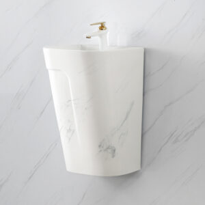 White Glazed Ceramic Sanitary Wares Marble feature Decoration Wall Hanging Washbasin Household Hotel Bathroom Basin Sinks