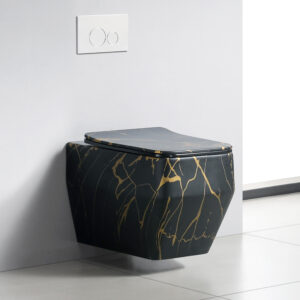 Black Lavatory Set with GImitated Natural Marble Water transfering Floating Vessel Toilet Bowl Wall Mounted Bathroom Toilet WC Commode