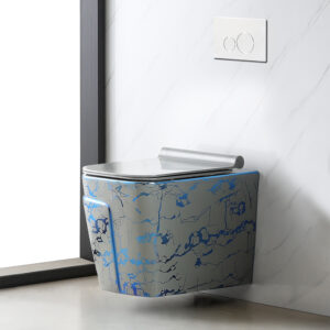 Blue Electroplated Grey Glazed Ceramic Sanitary Wares Set Square Wall Hung Toilet Commode Household Hotel Bathroom Toilets Bowl Wc