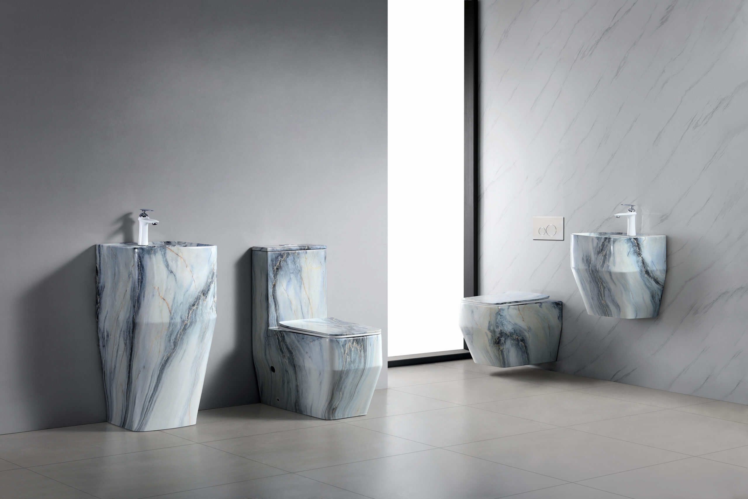 Artificial Stone Pattern Sanitary Inodoros Unit Blue Color Water transfer Integrated Floor Standing Basin For Bathroom Balcony