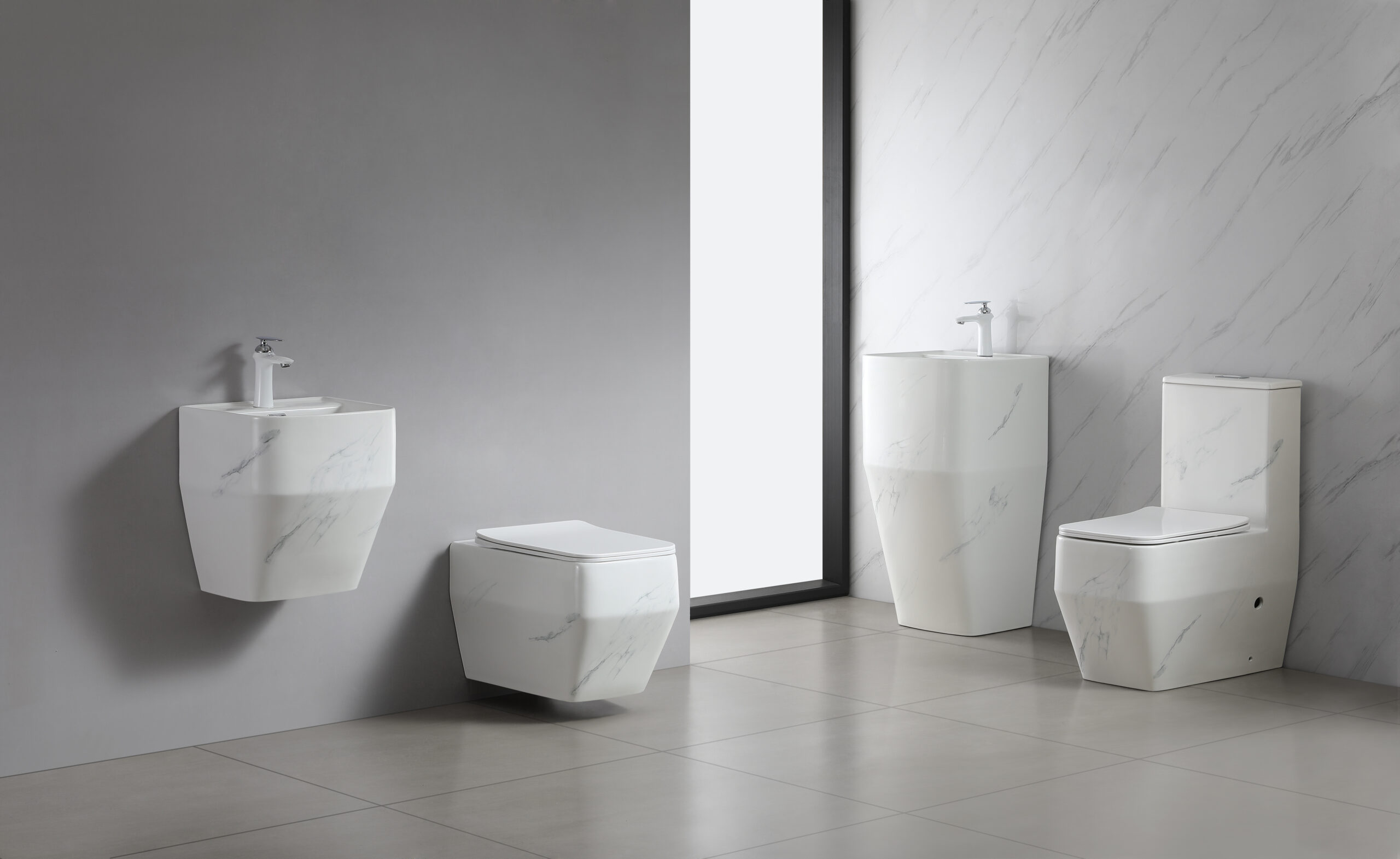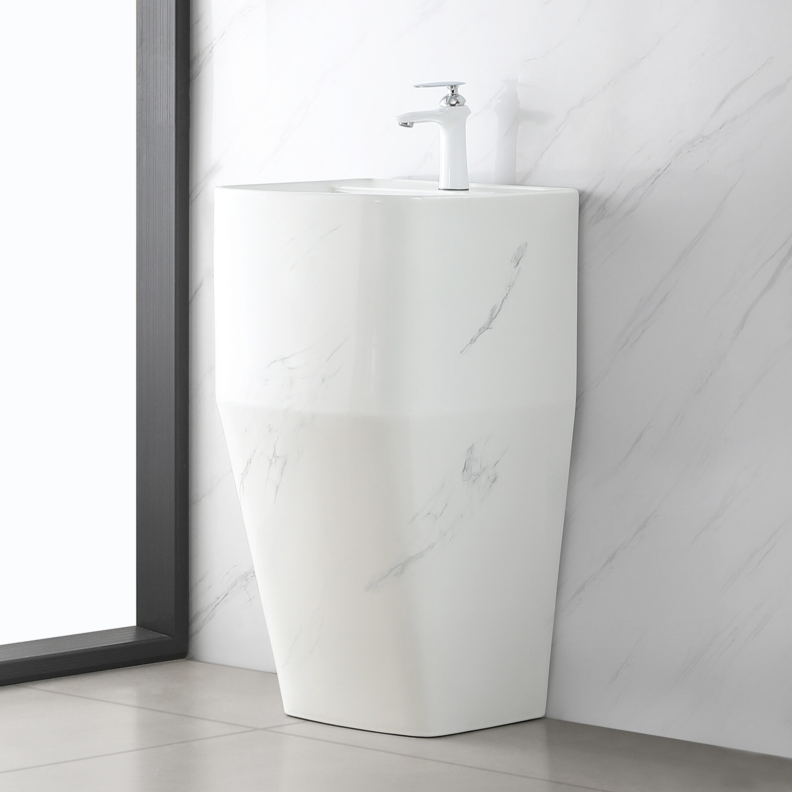 Artificial Stone Pattern Sanitary Wares Unit White Color with Marble Grain Integrated Floor Standing Basin for Bathroom Balcony