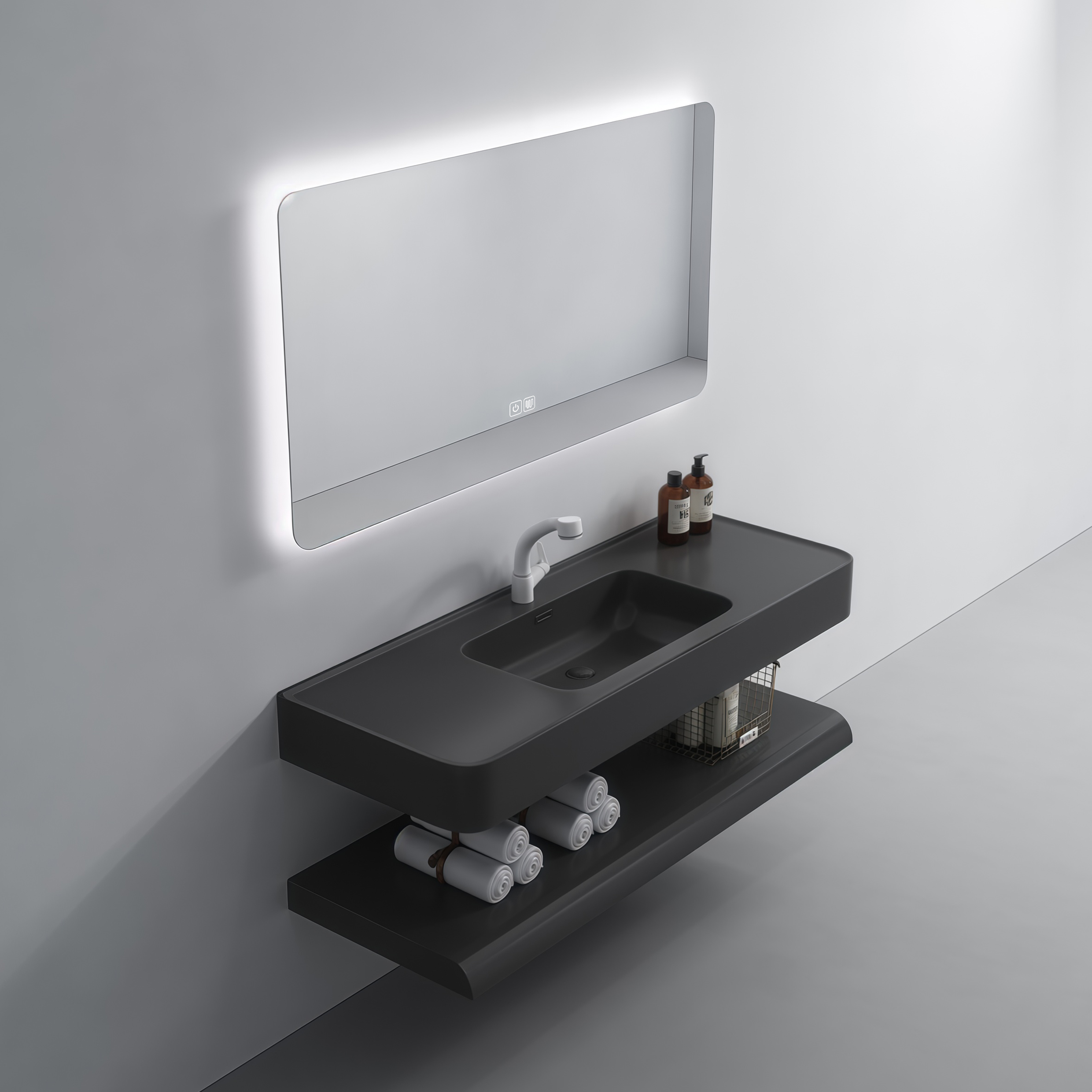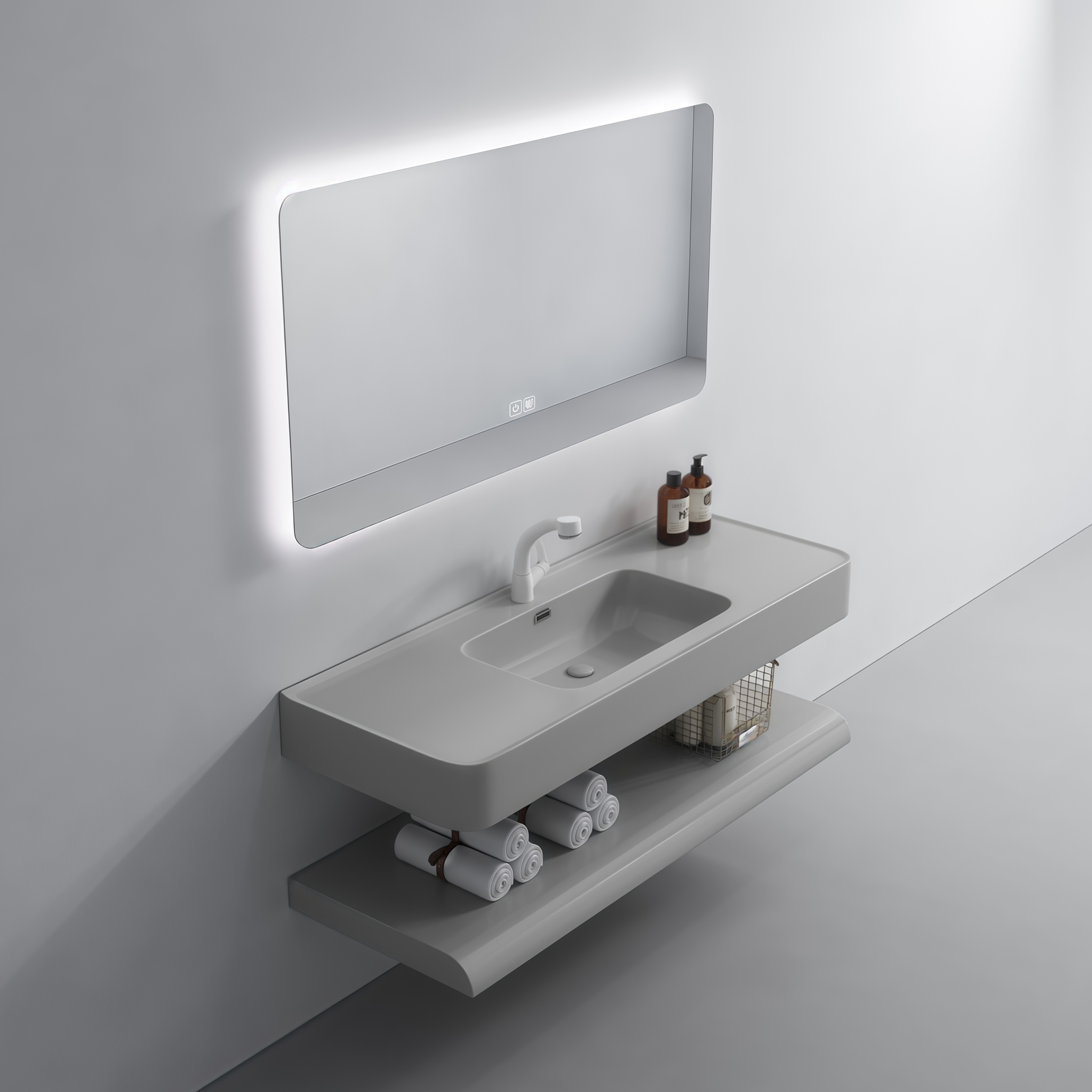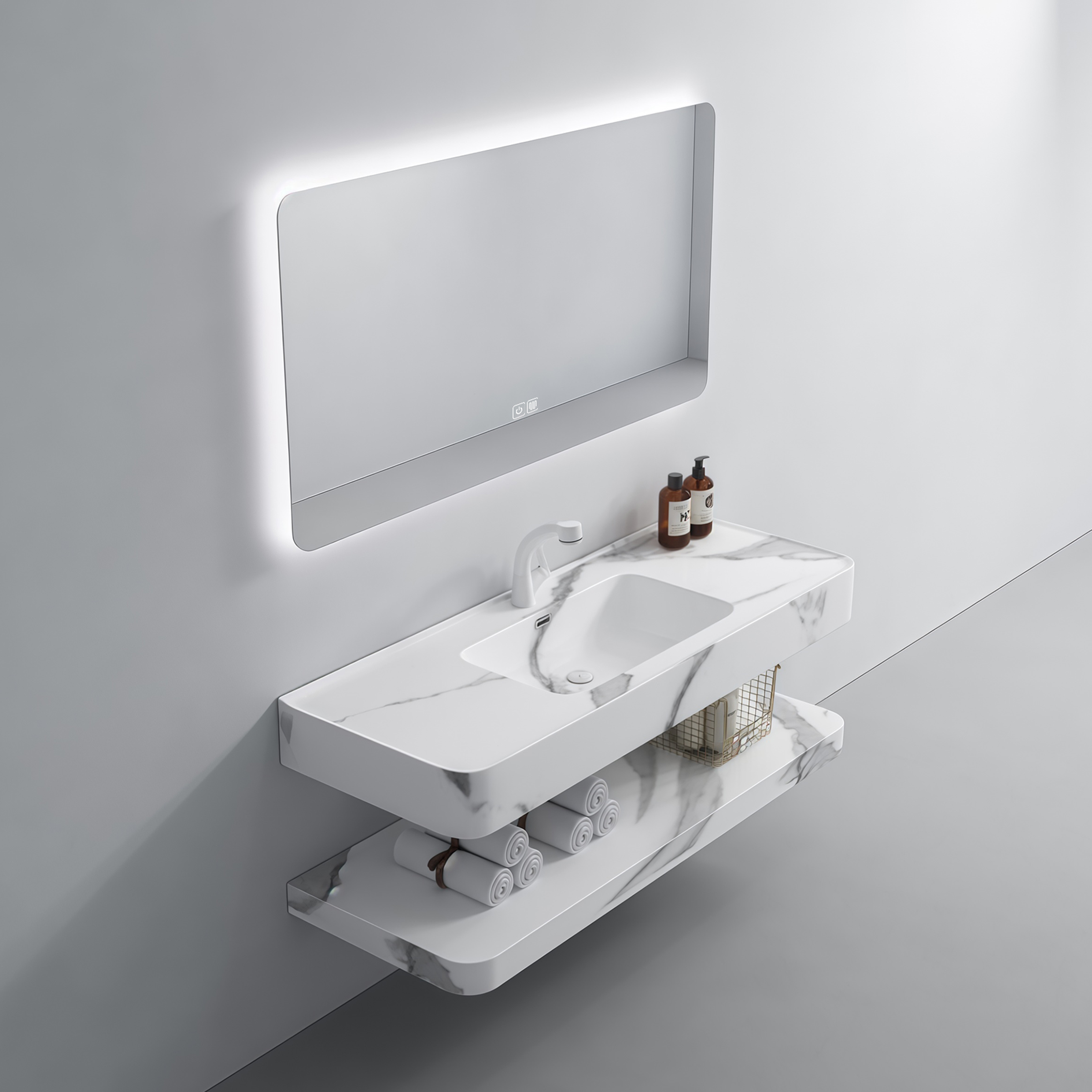 Artificial Stone Wash Basin Marble Design Wall Hung Floating Cabinet Double Layer Sink Durable Easy Clean Bathroom Vanity