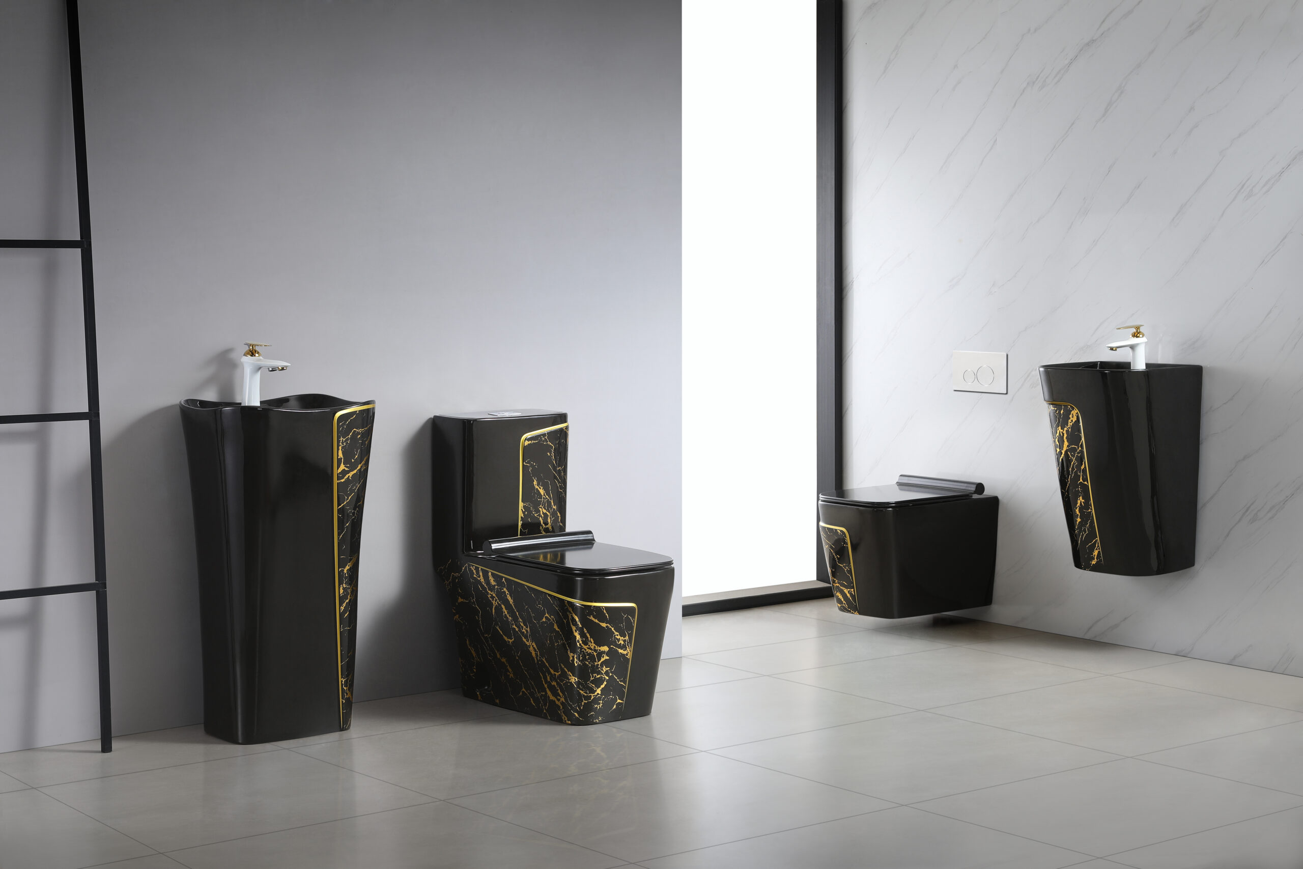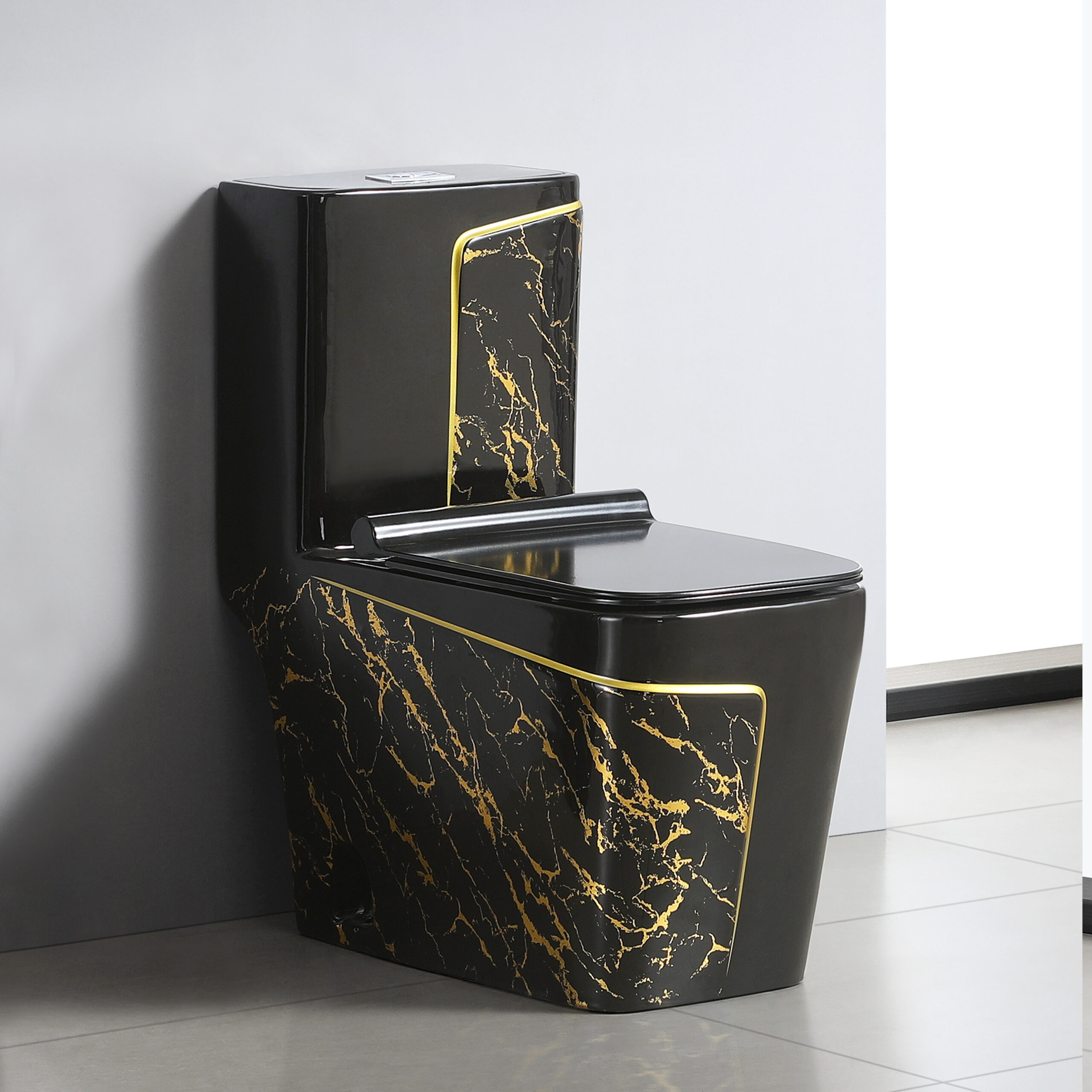 Black Gold Marble Lavatory Furniture Unit One Piece Floor Mounted Water Closet Household Hotel Bathroom Toilet WC Commode