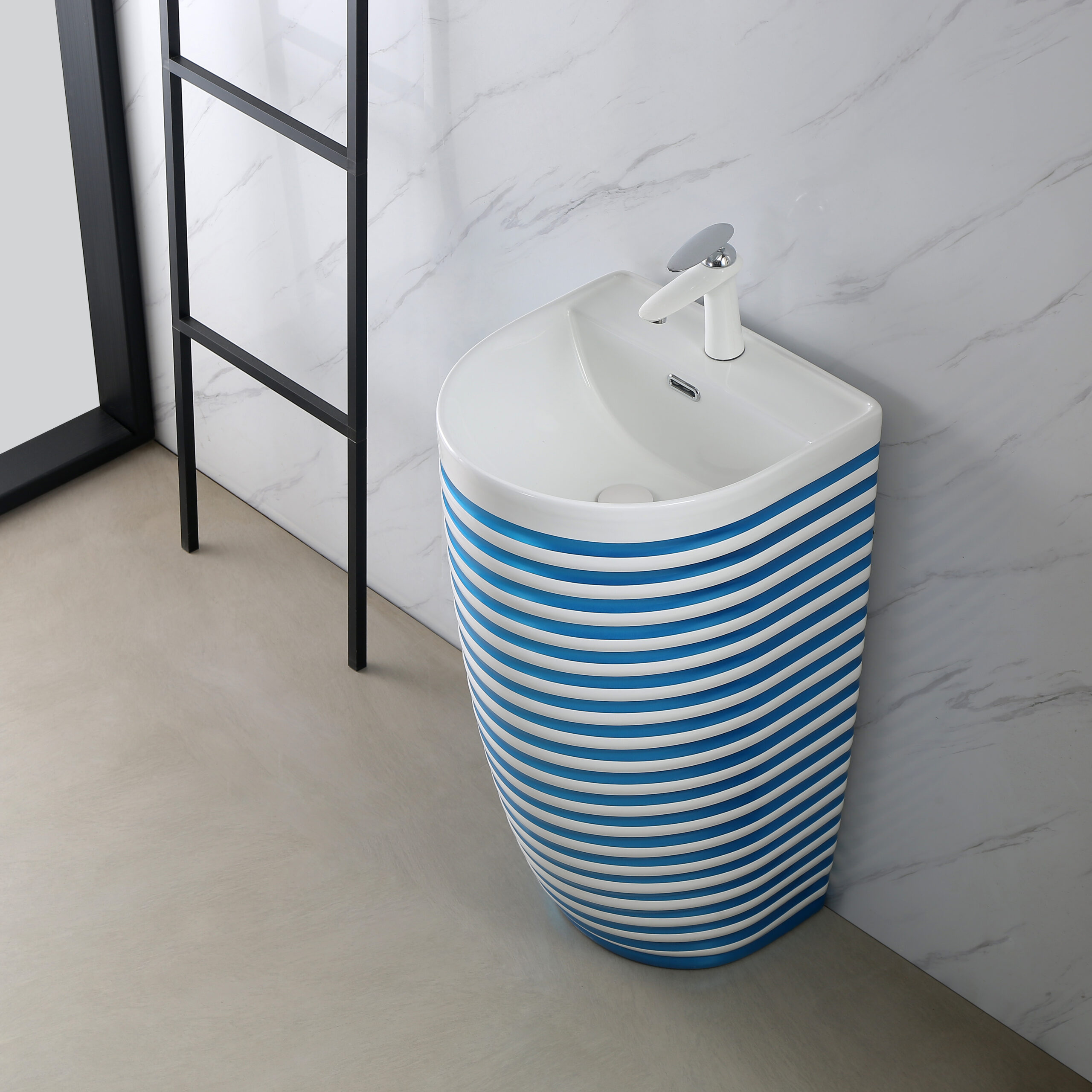 Blue Electroplated Stripes Standing Basin Lavabo Floor Mounted Bathroom Sink Line Pattern Ceramic Hand Wash Basins