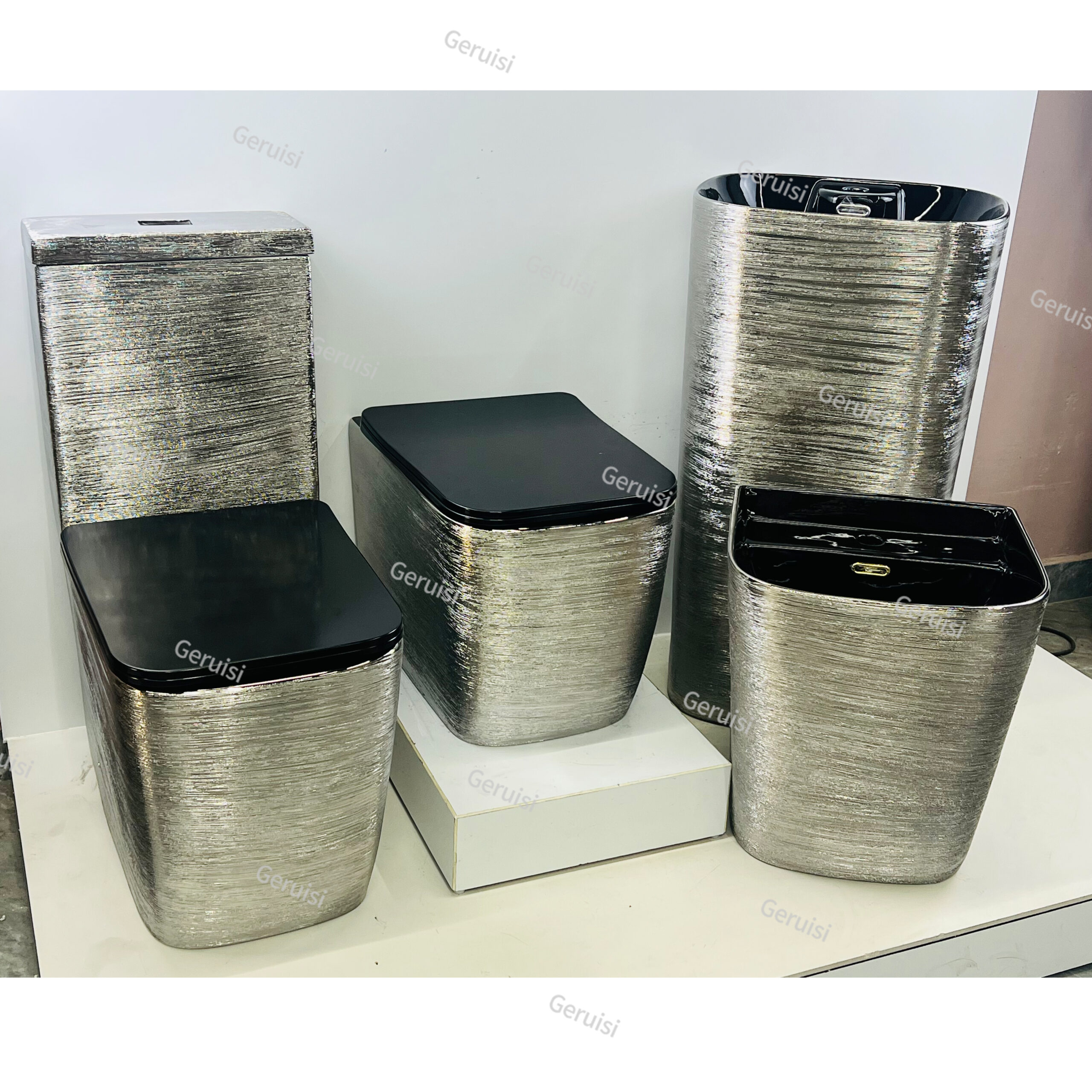 Contemporary Design Electroplated Grey Silver Handmade Wire Drawing Toilet & Basin Artistical Bathroom Interior Design Combination