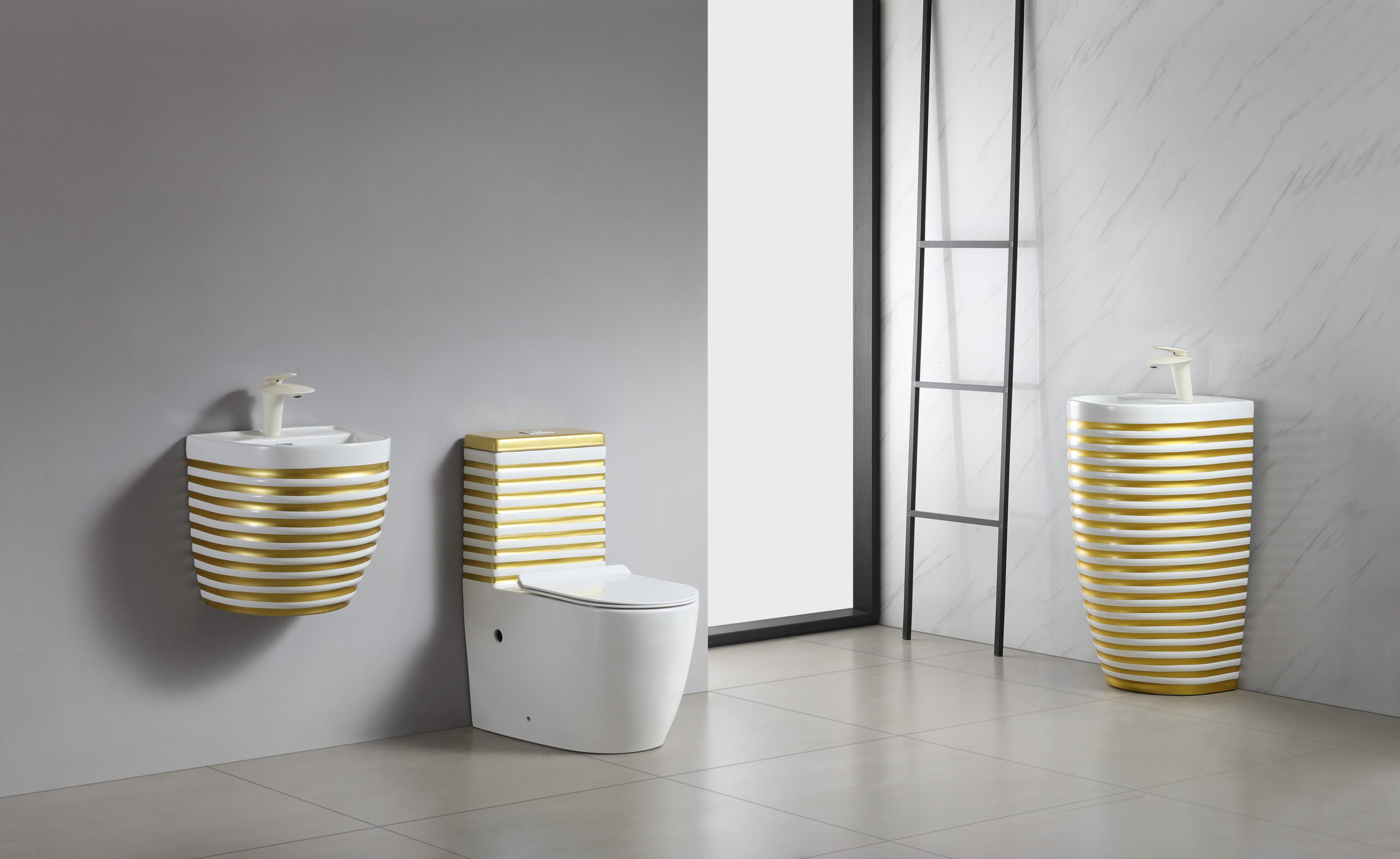 gold line pattern wall hung basin