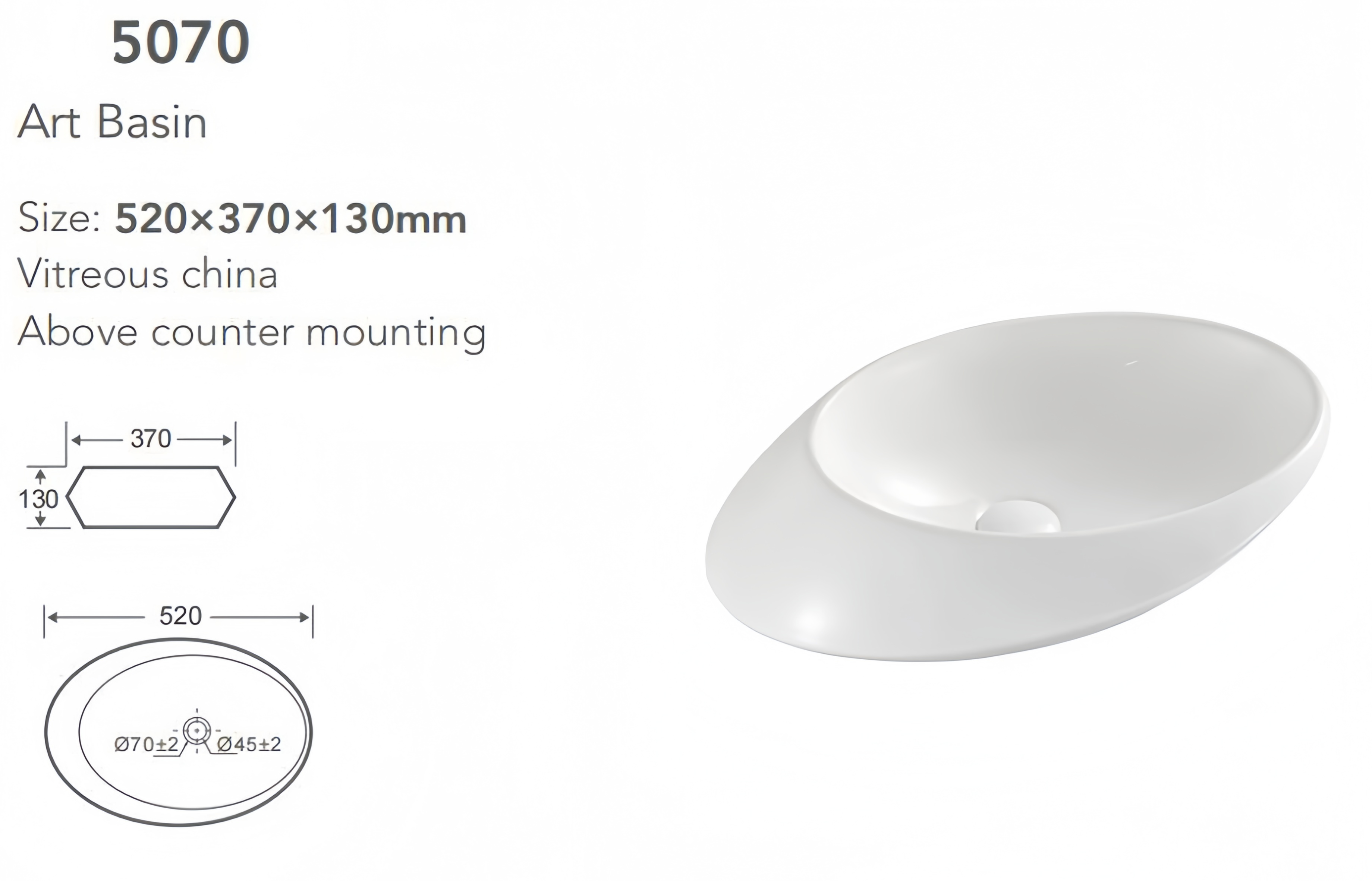 Washroom Porcelain Above Counter Vessel Basin