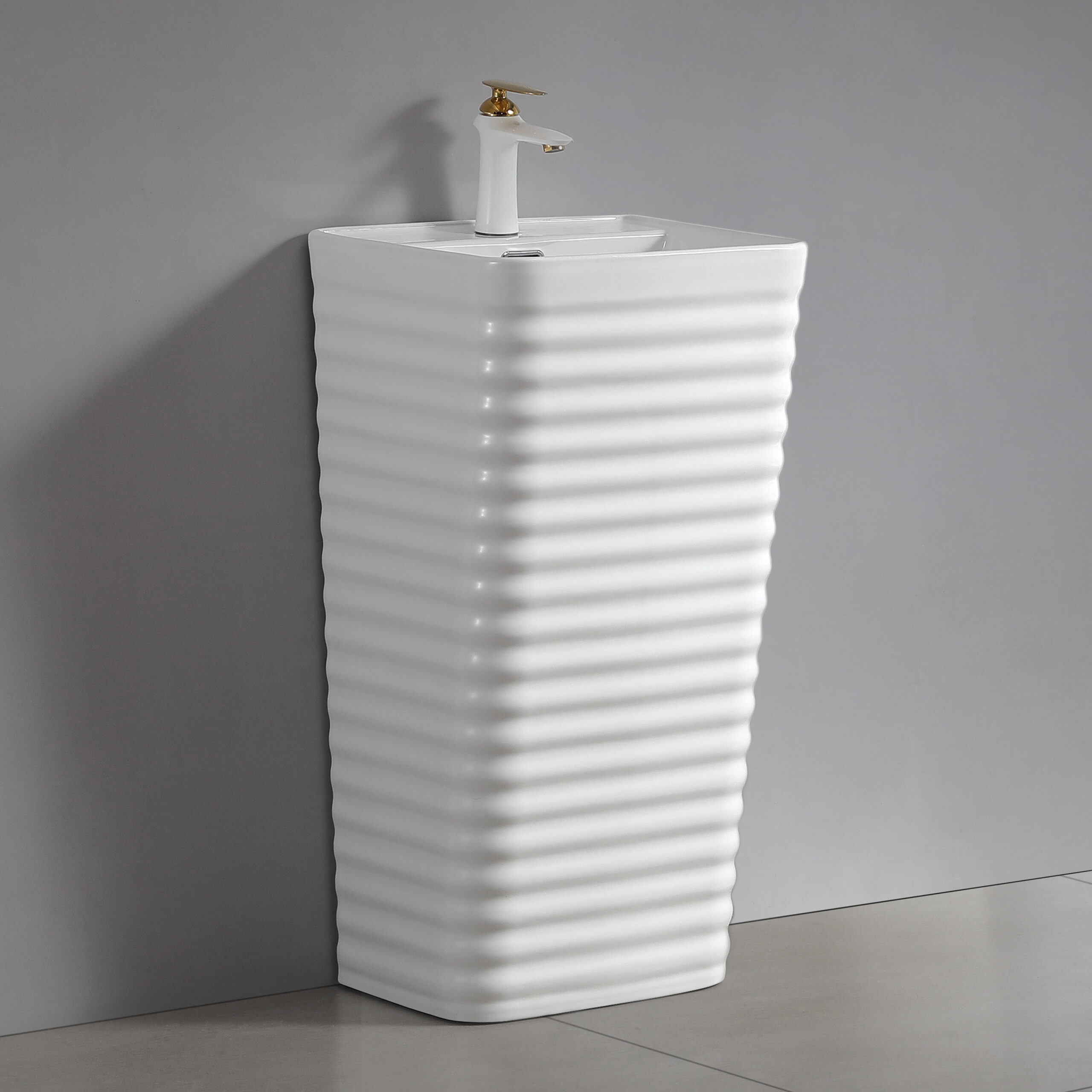 Fashionable Ceramic Integrated Ground Mounted Square Washbasin Single-Hole Faucet Mount for Bathroom Including Drainer