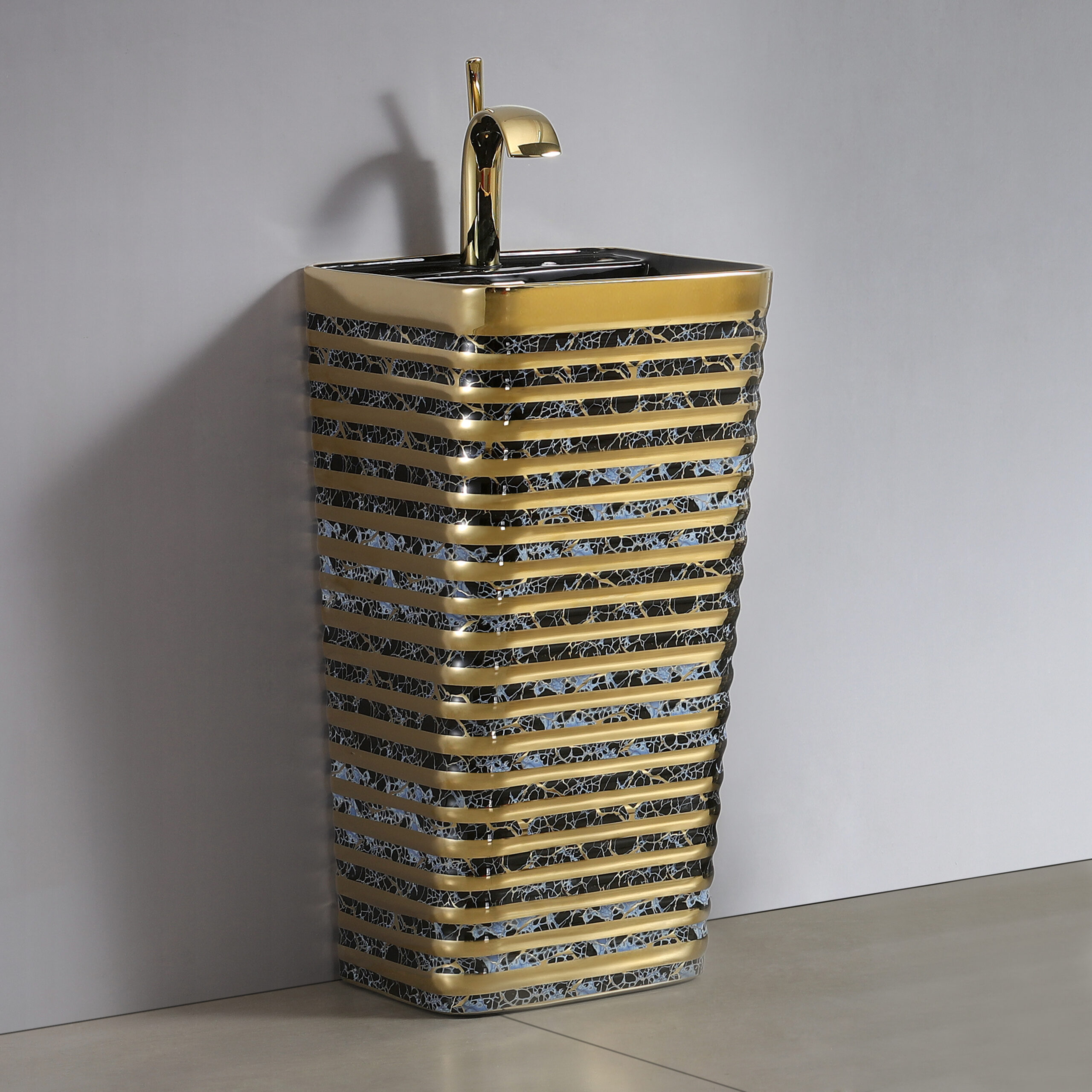 Floor mounted Art basin Electroplate Pedestal basin sink Colorful Ceramic bathroom hand wash basin sink for hotel use
