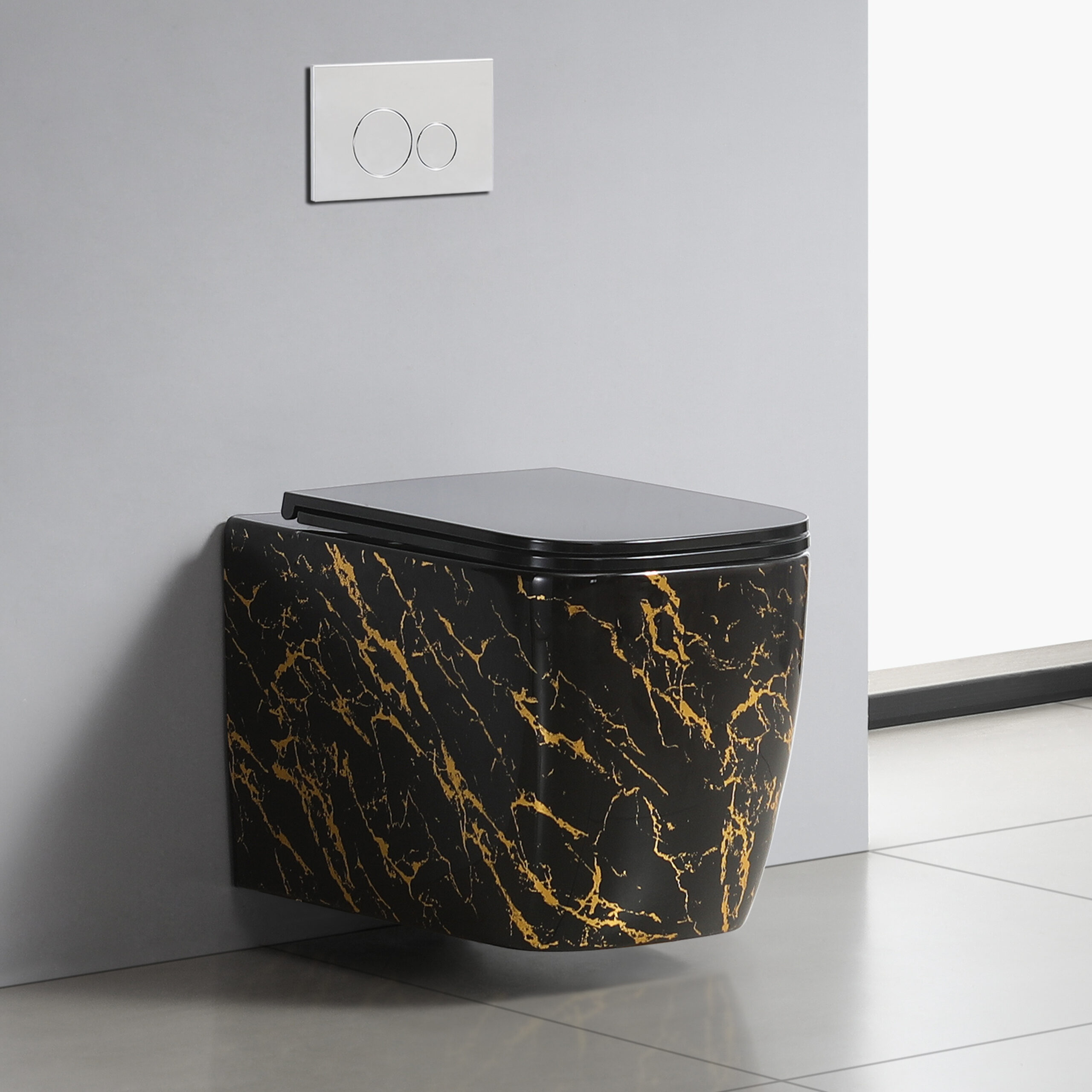 Gold Irregular Pattern Black Glazed Ceramic Commode Wc Wall Hung Toilet Bowl Bathroom Toilets Lavatories Combo for Hotel