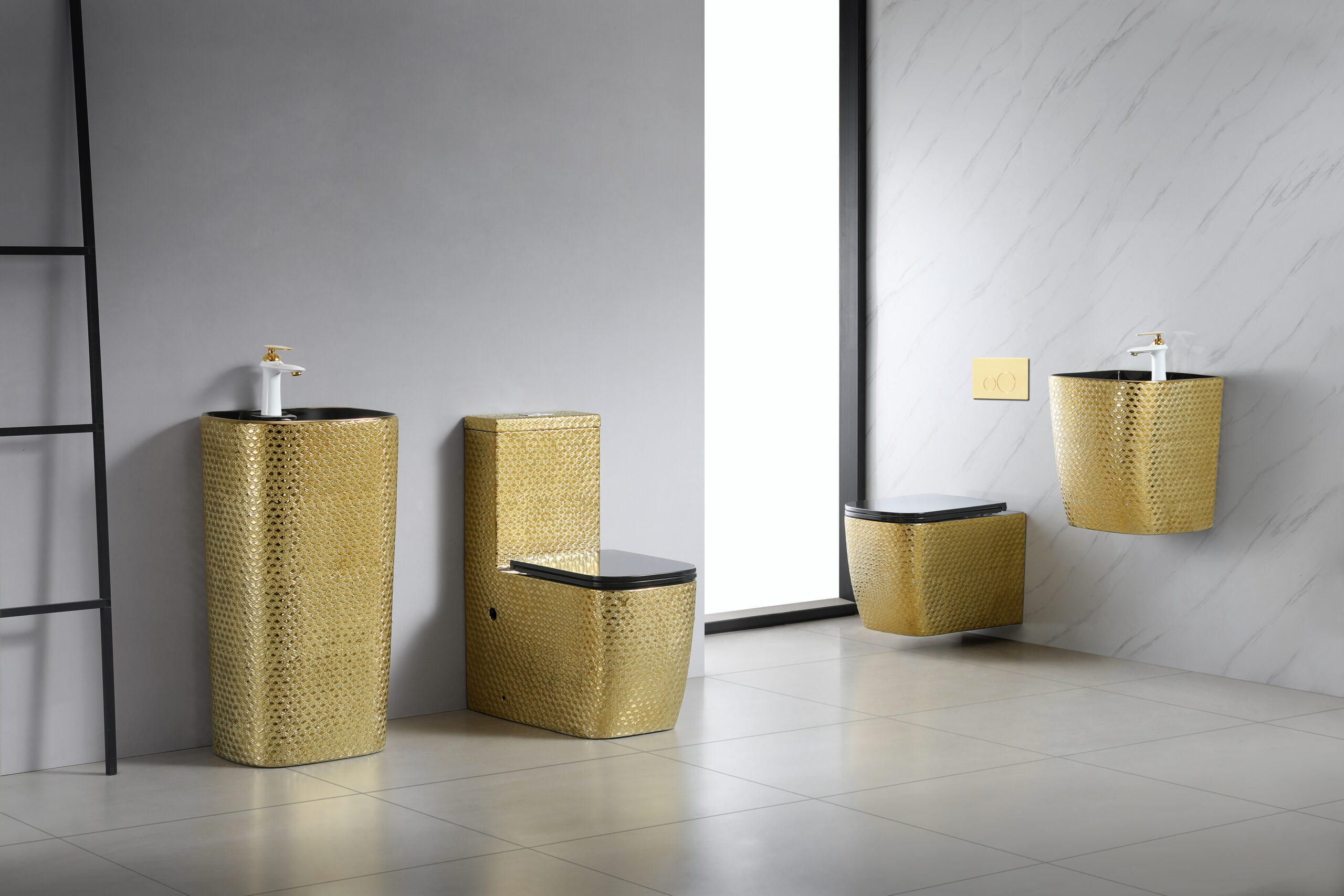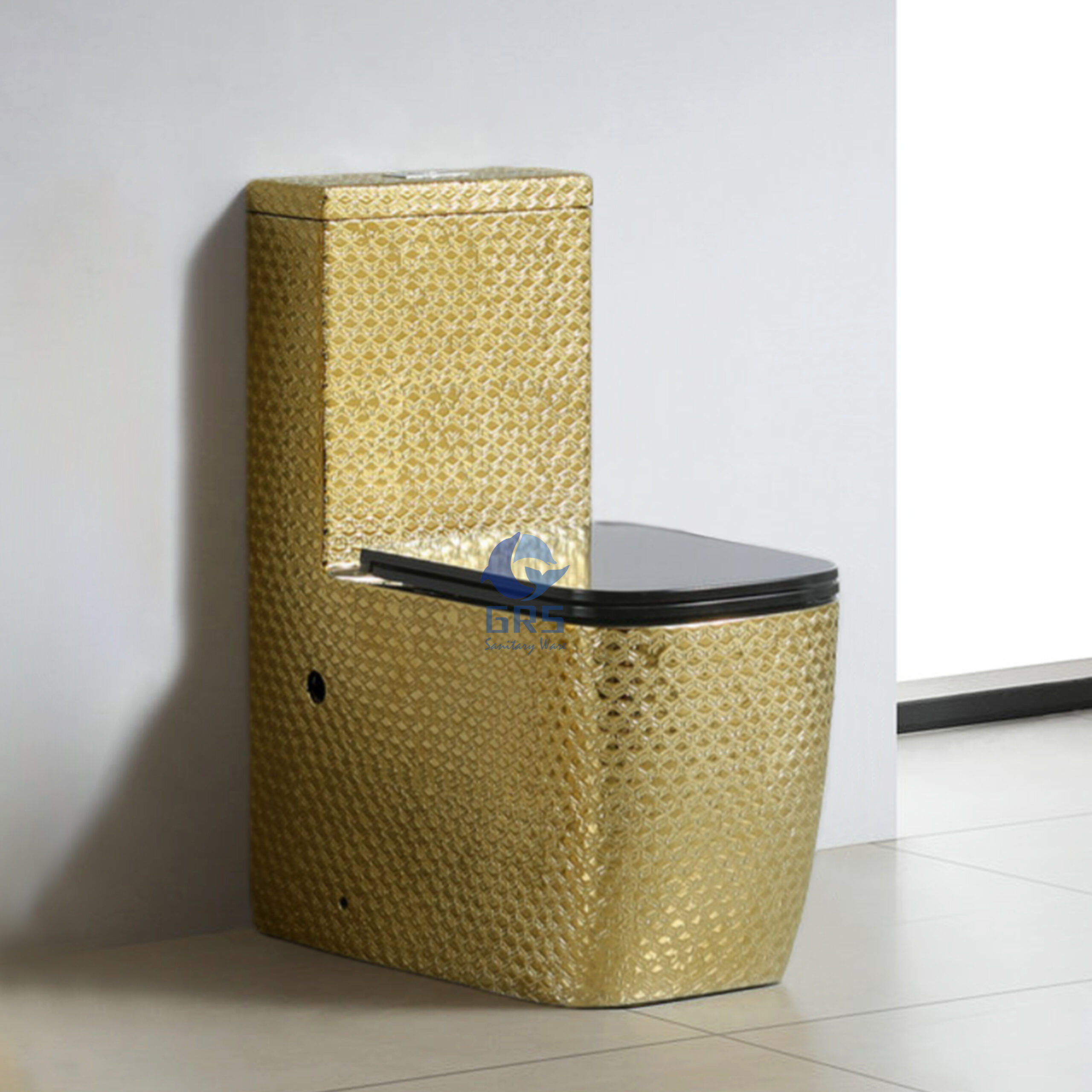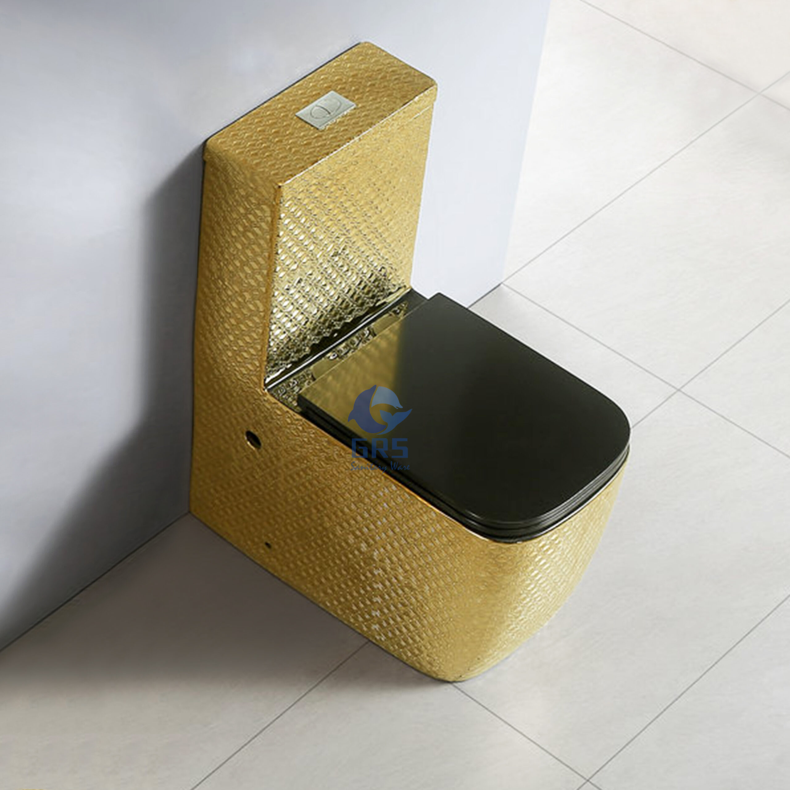 Gold-plating Ceramic Sanitary Wares Set Standing One Piece Golden Toilet Commode with Black Cover Household Hotel Bathroom Toilets Bowl Wc