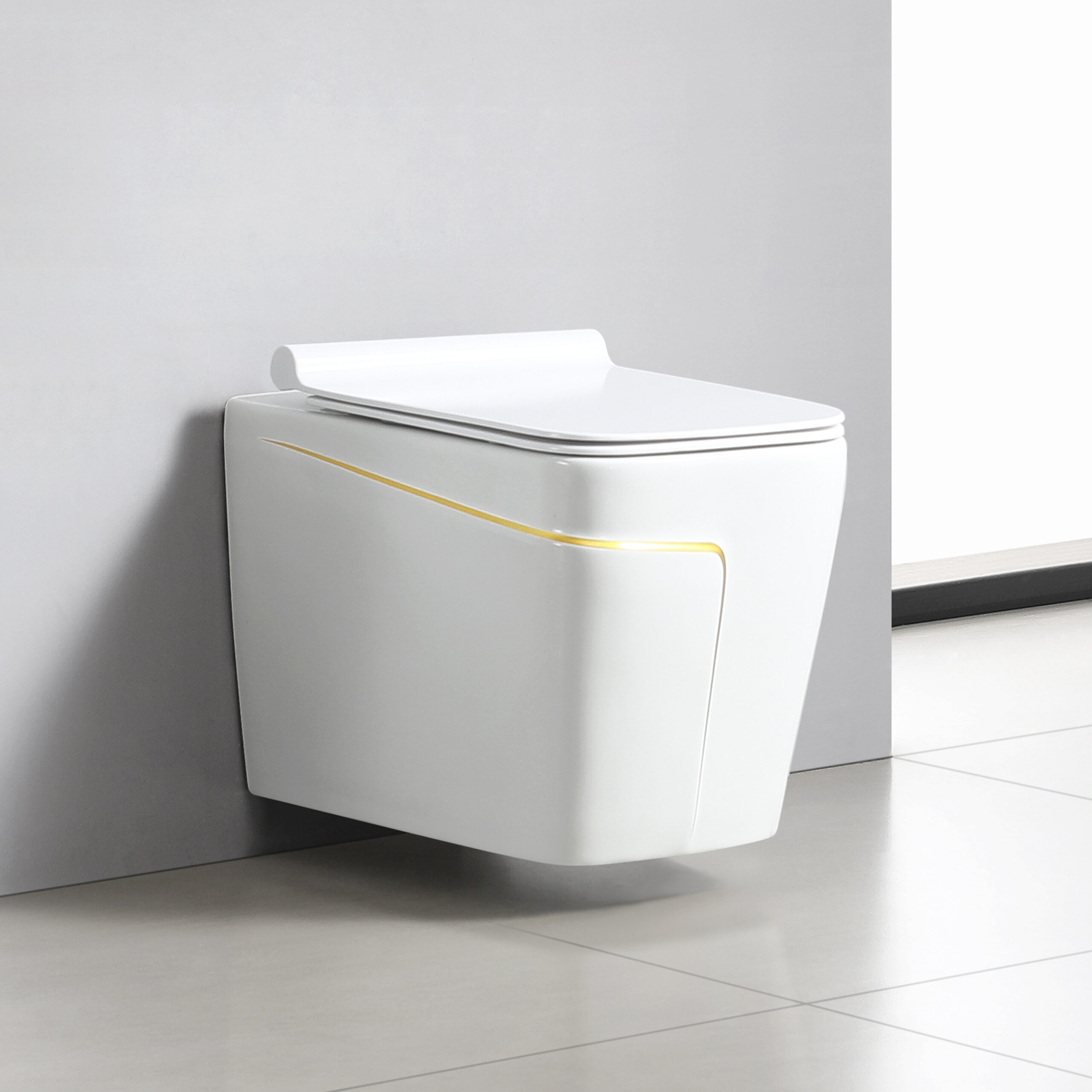 Golden Curve White Glazed Ceramic Sanitary Wares Set Square Wall Hung Toilet Commode Household Hotel Bathroom Toilets Bowl Wc
