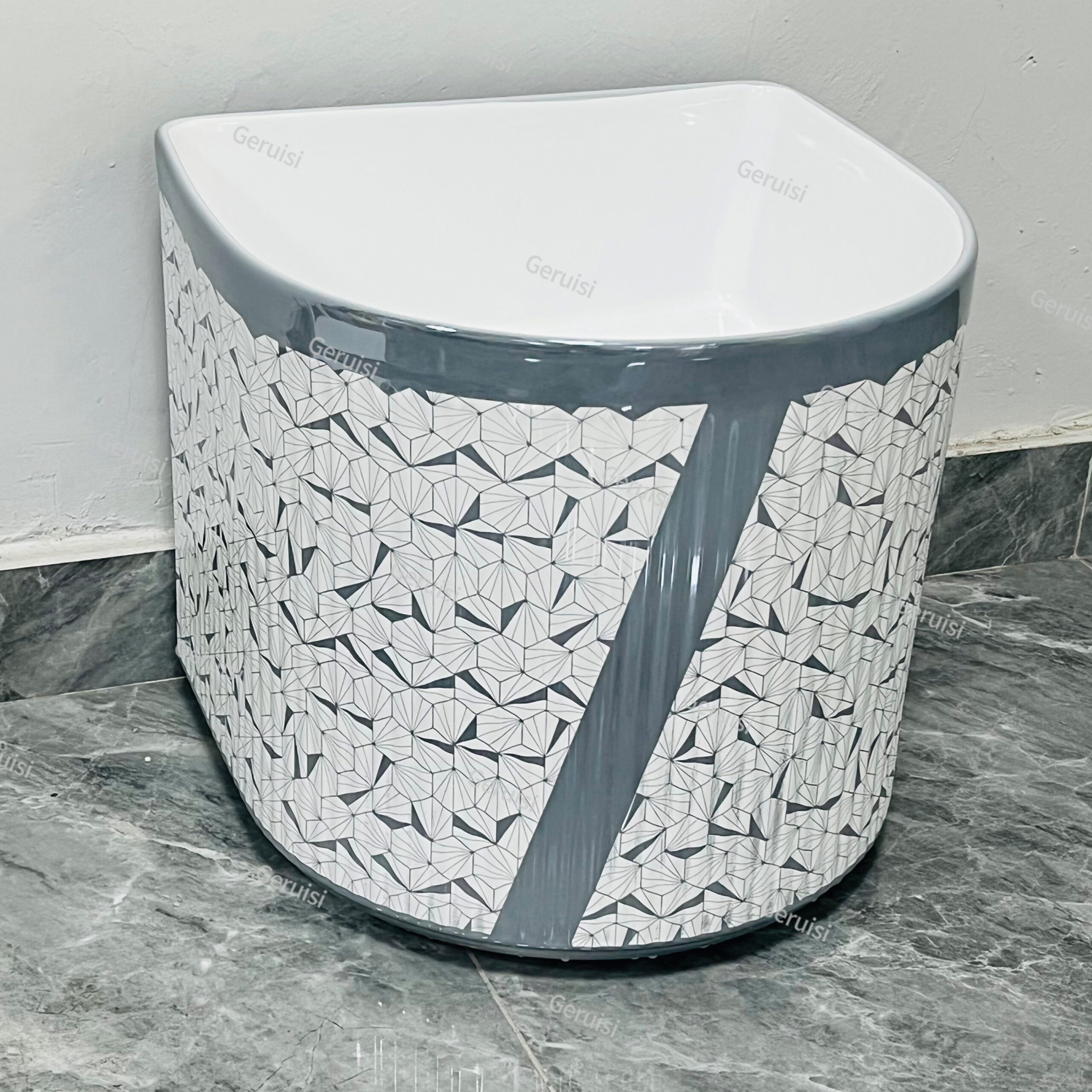 Small Size Mini Wall Mount Rectangular Bathroom Corner Ceramic Hand Wash Art Basin Sink
