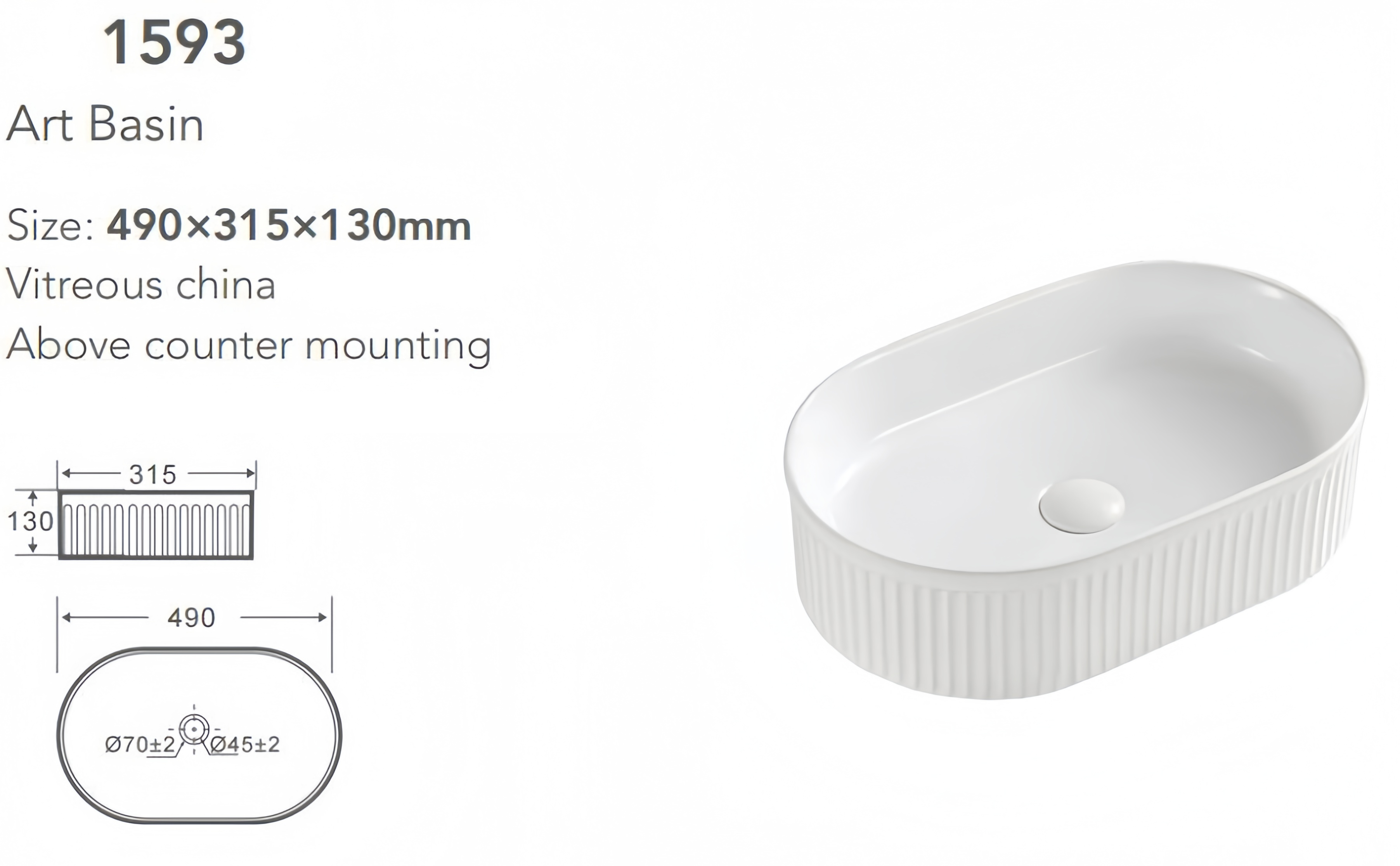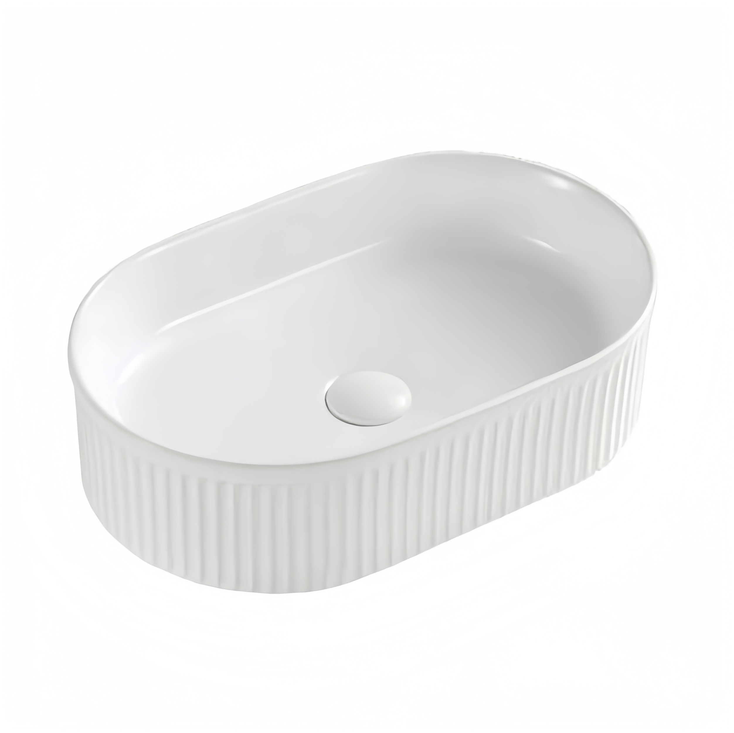 Good Quality Grooves Fluted Oval Basin Bathroom Basin Bowls Sinks Table Top Wash Hand Porcelain Basin Bathroom Sink