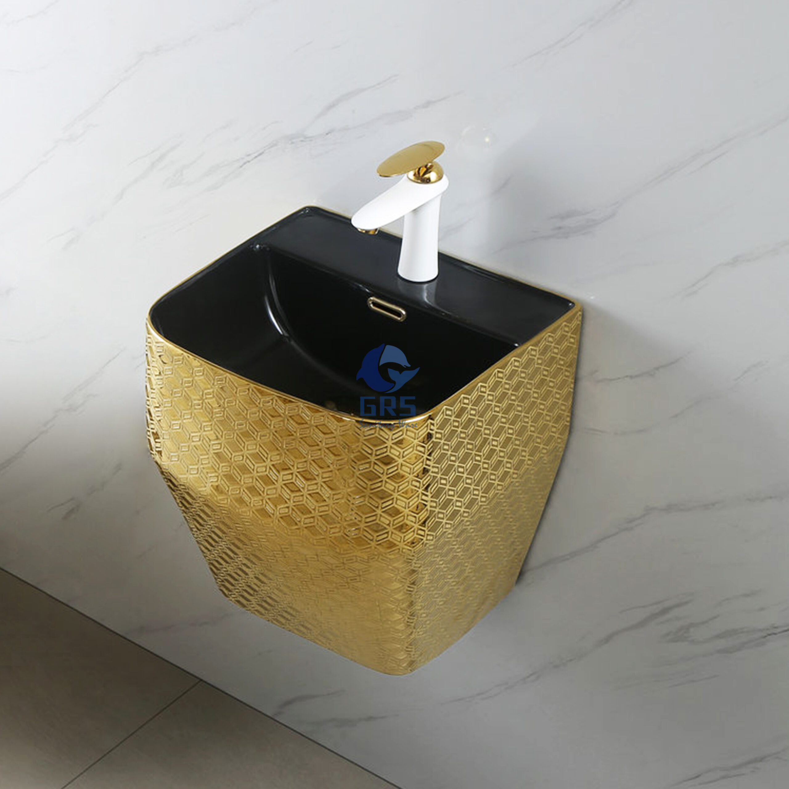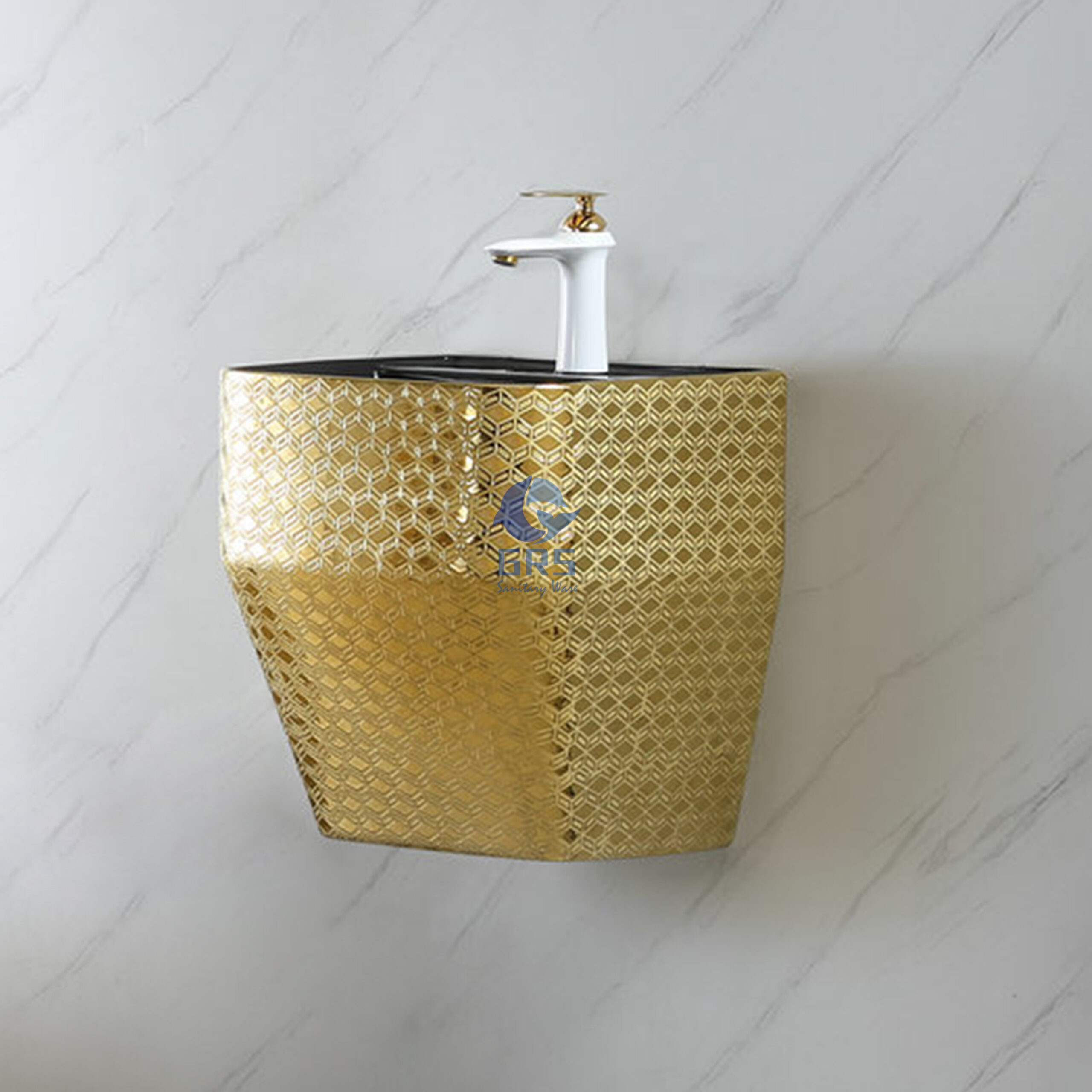 Black and gold colored wall hung basin
