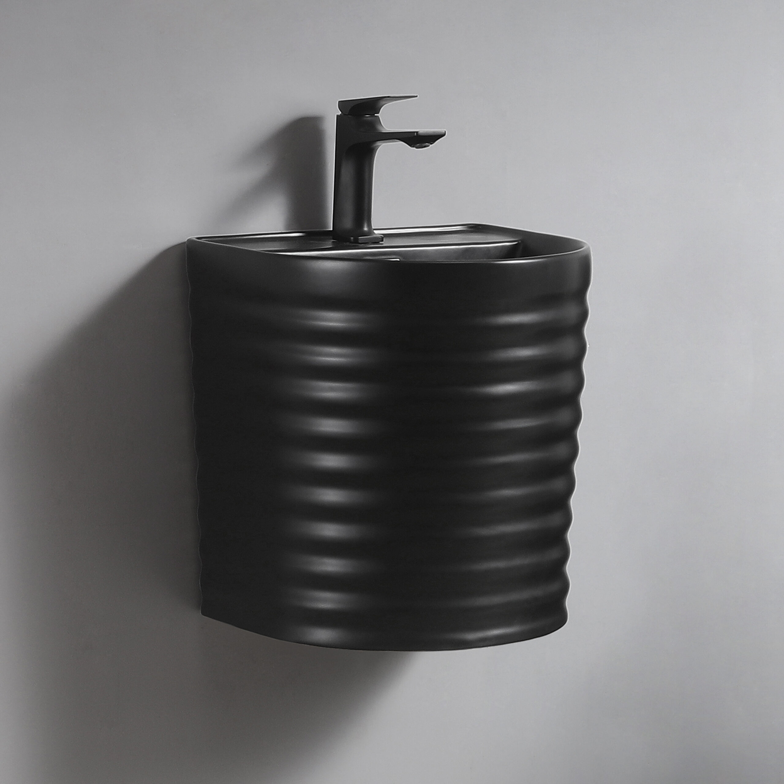High Standard Matt Black Wall Hung Basin Lavabo Wall Mount Bathroom Sink Ceramic Hand Wash Basin Half Pedestal Basin