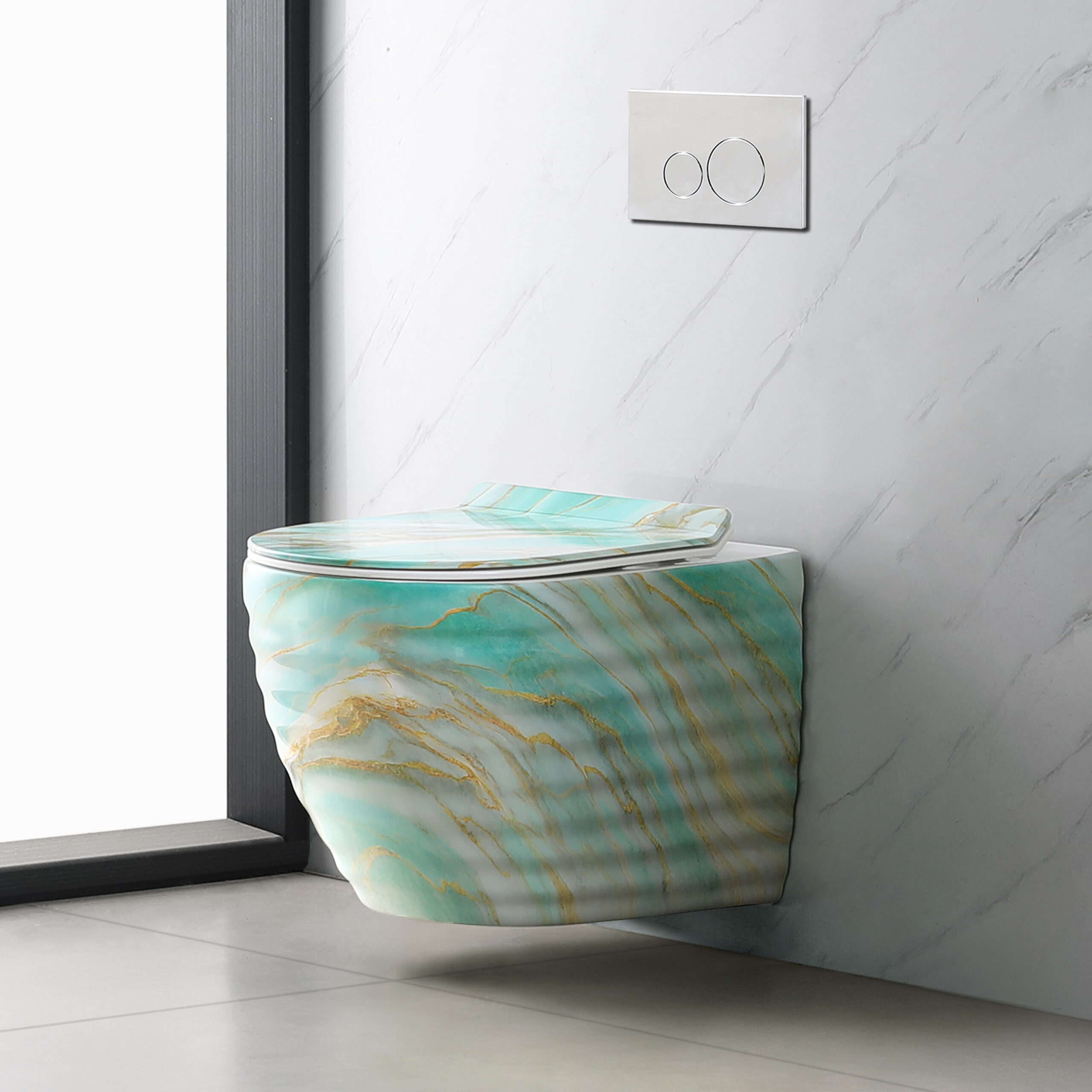 Hot Sale Design Striated Wall Hung Toilet Lavabo Wall Mount Bathroom Commode Green Marble Type Ceramic Water Closet