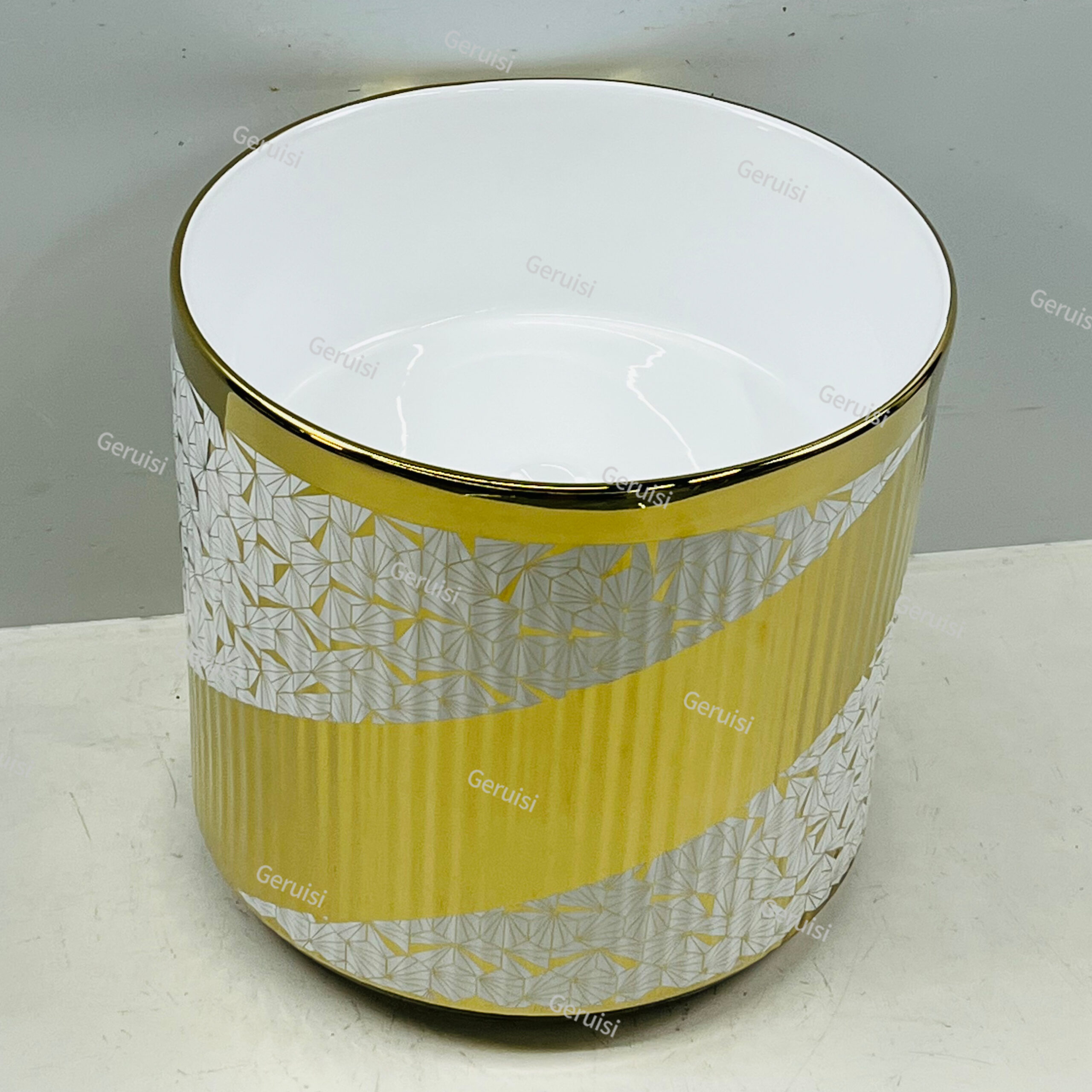 Hotel-grade bathroom furniture from factory porcelain countertop fluted cylinder ceramic sink gloden marble washbasin
