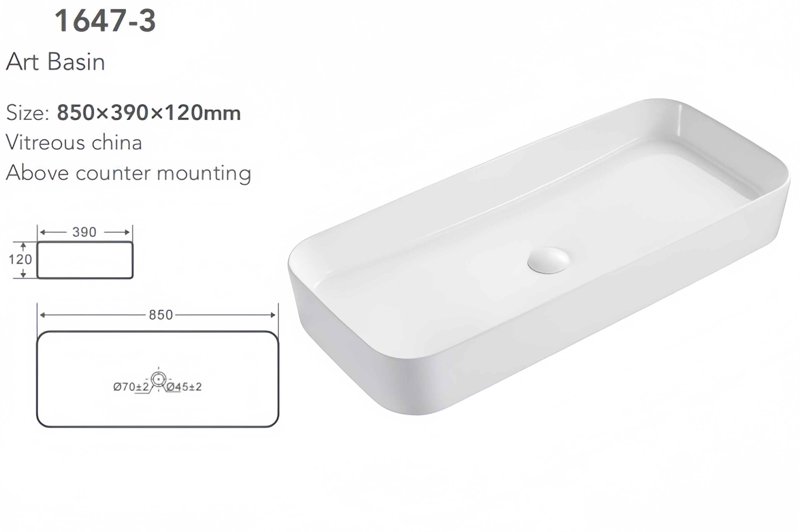 Large Size White Ceramic Rectangular Bathroom Vessel Sink Countertop Art Basin Porcelain for Home Hotel Use