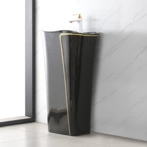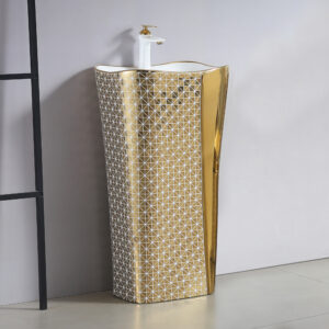 Floor mounted Art basin Electroplate Pedestal basin sink Colorful Ceramic bathroom hand wash basin sink for hotel use