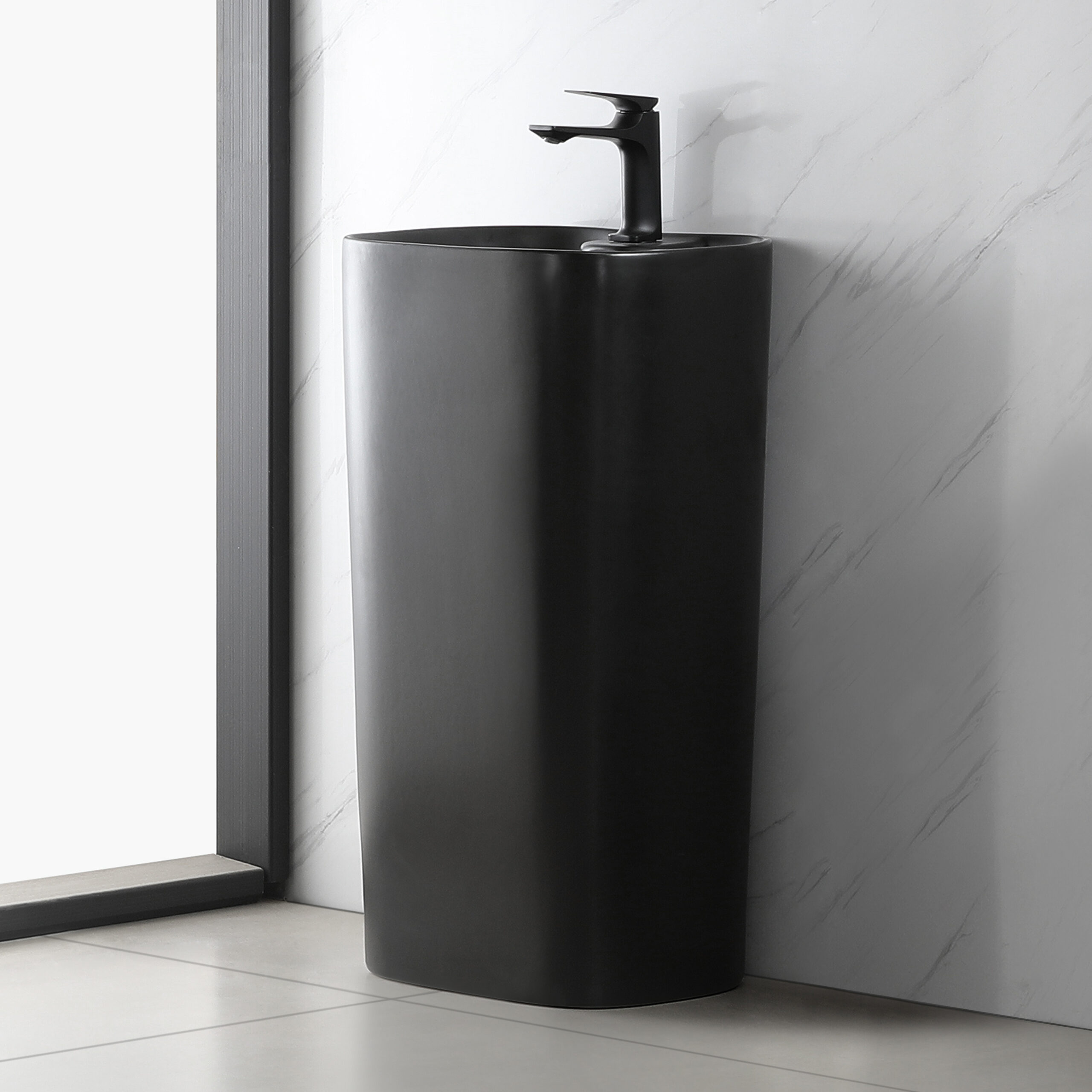matt black pedestral basin