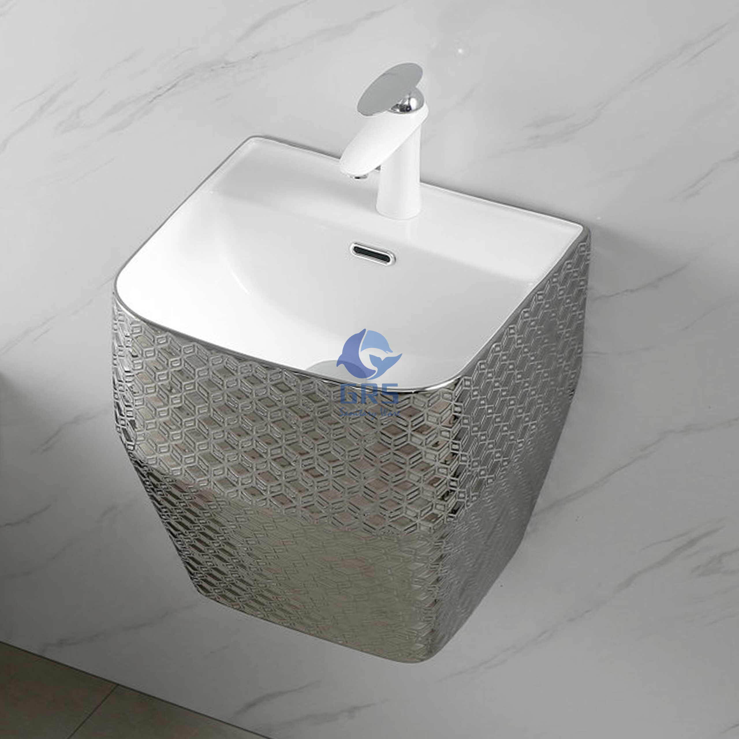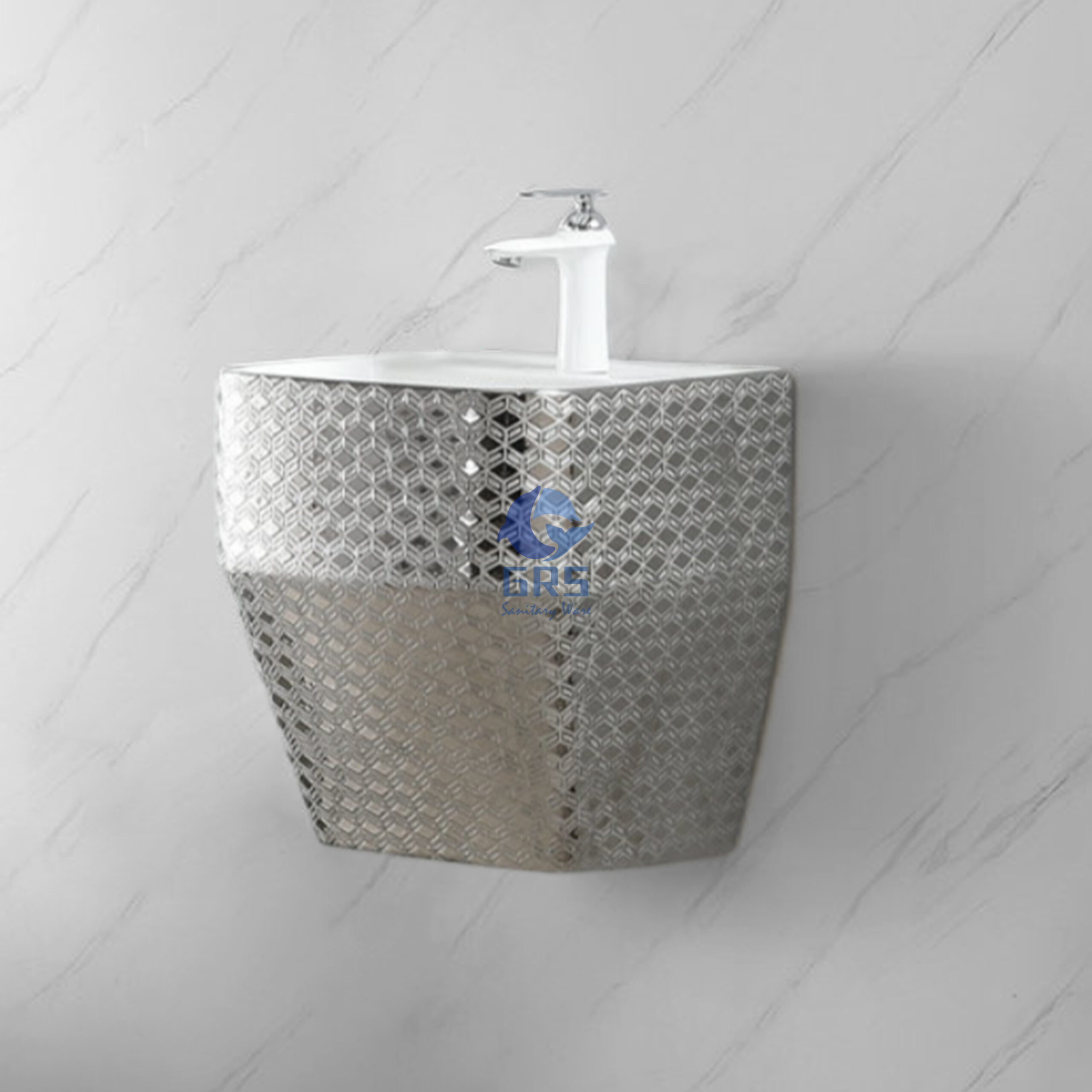Luxury Grey Silver Style Sanitary Wares Lavatory Unit Electroplated Geometric Pattern Vessel Basin Bowl Wall Hung Household Bathroom Sinks