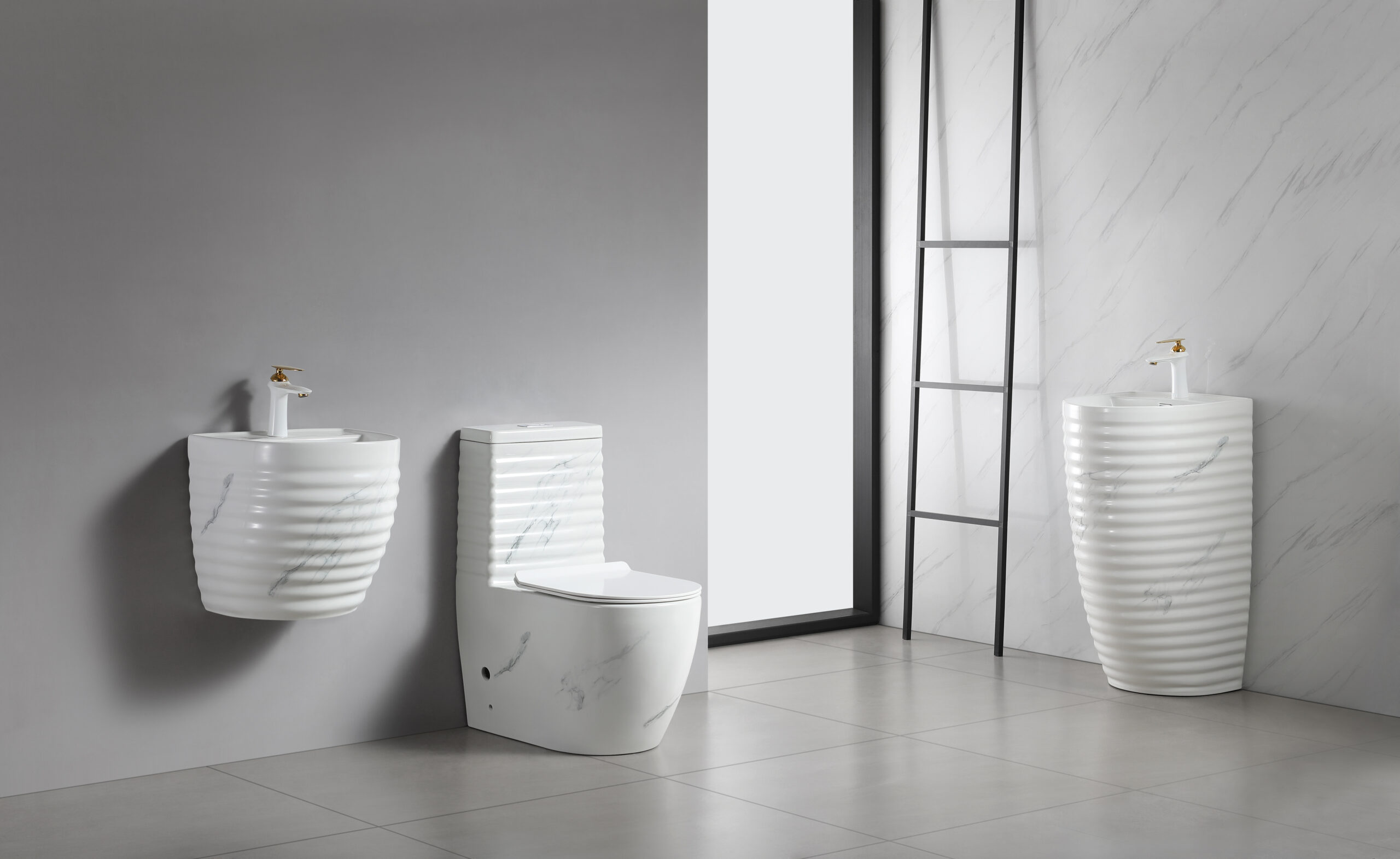 Artificial Stone Pattern Sanitary Wares Unit Black Gold with Marble Grain Integrated Floor Standing Basin for Bathroom Balcony