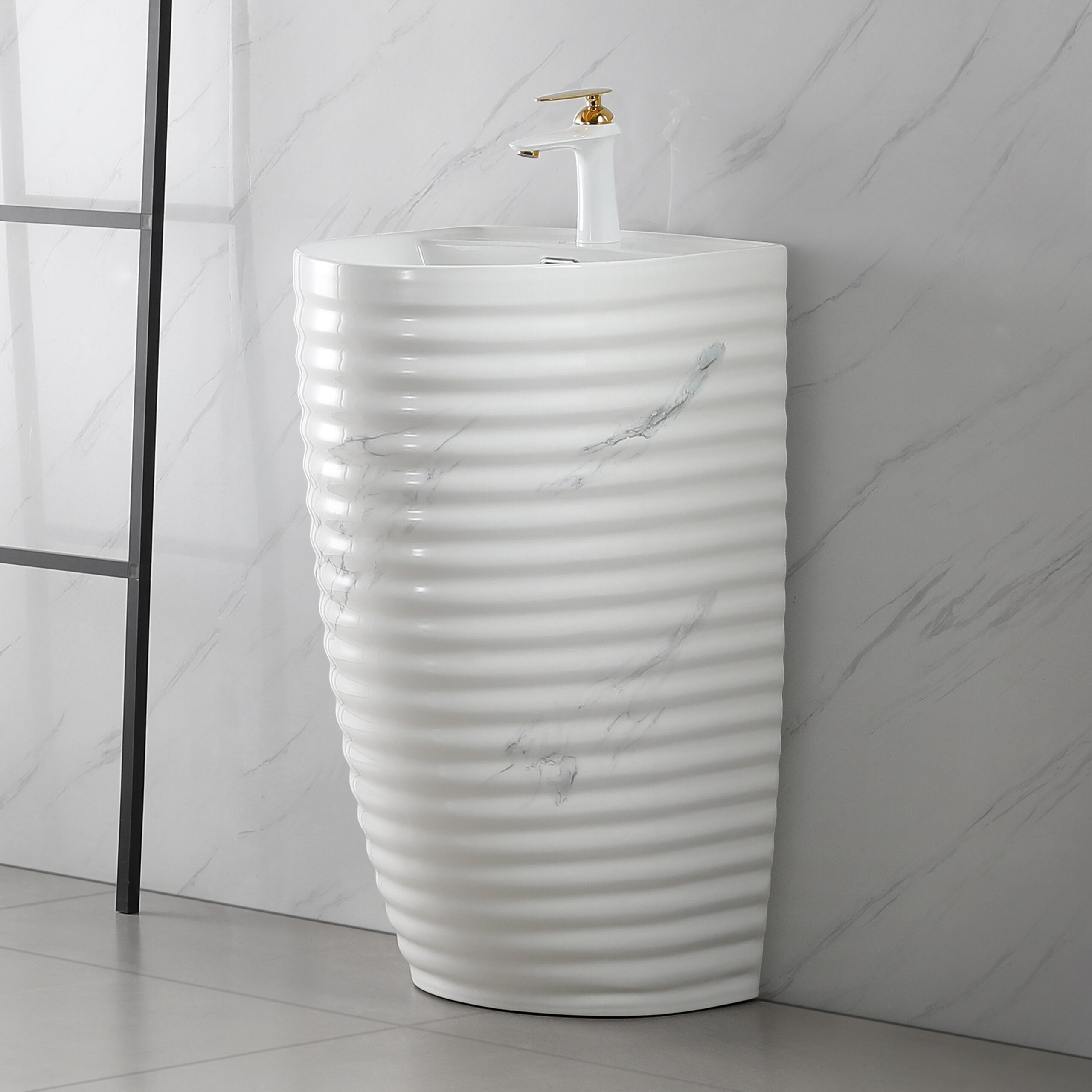 Marble Style Painting Freestanding Handmade Drawing Ceramic Column Single-Hole Faucet Mount Pedestal Sinks for Hotels for Bathroom Use